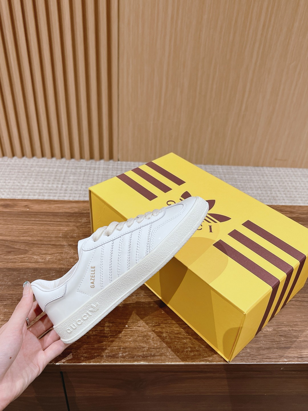 This shoe features a round toe design, giving it a cute feel while also being very suitable for various foot shapes. The Gucci and Adida* logos are intertwined on the upper, showcasing both brand uniqueness and fashionable personality. The lace-up design makes the shoes easier to put on and take off, and allows for easy adjustment of tightness according to personal preference, very convenient!!