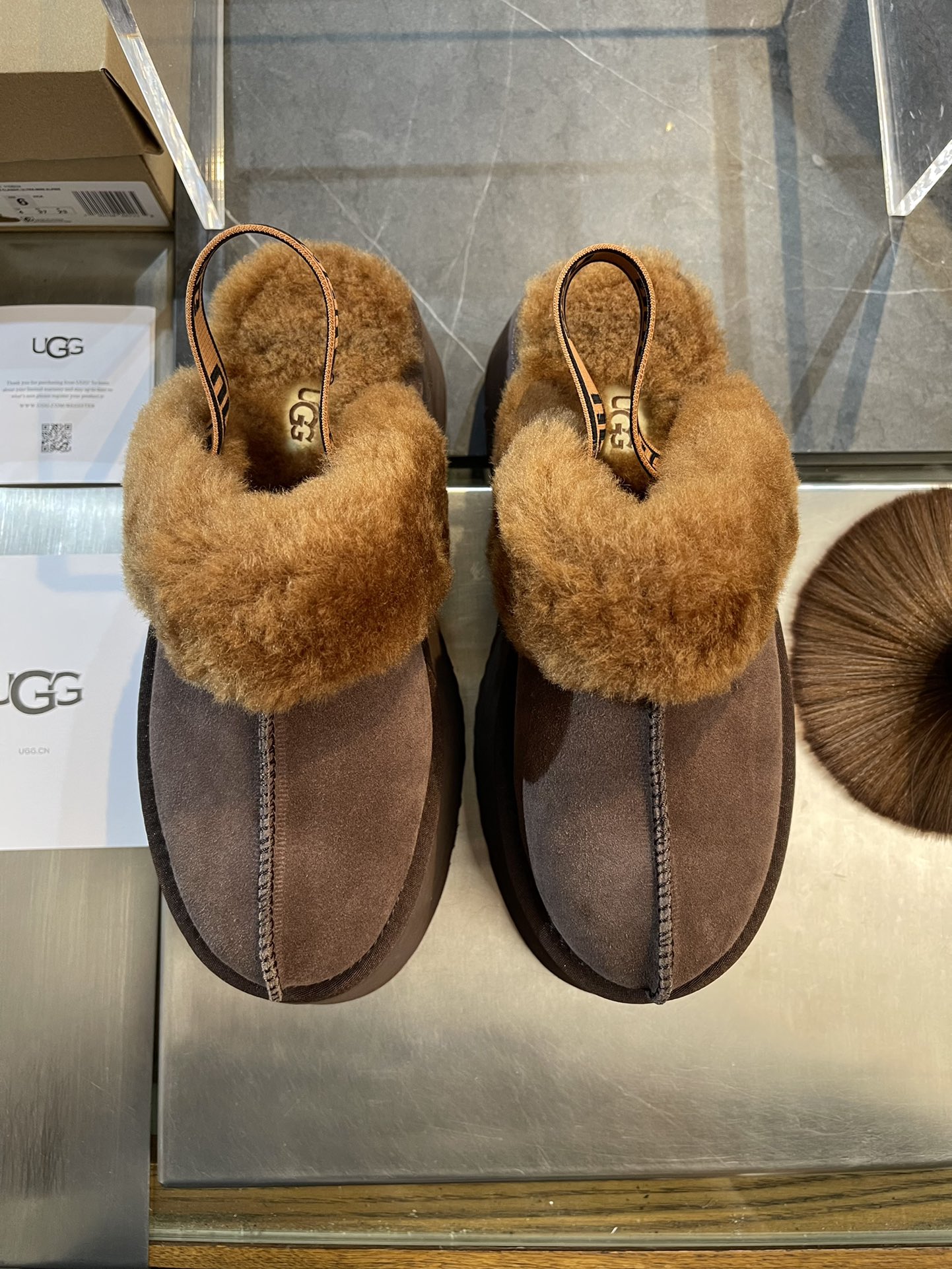 UGG 2024 latest back strap platform sandals. Size 35-41. 5cm Eva sole. Genuine sheepskin lining.