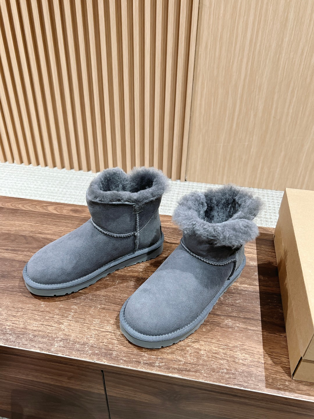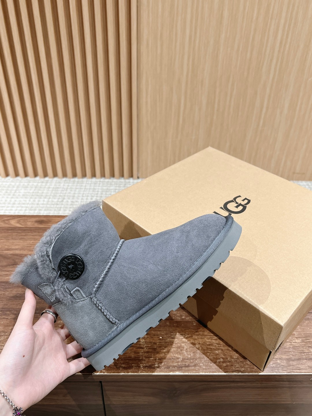 UGG 3352 wood buckle snow boots. Made of high-quality sheepskin, soft and comfortable. Wooden buttons and elastic collar design. Lightweight EVA sole for all-day comfort. Sizes 35-39.