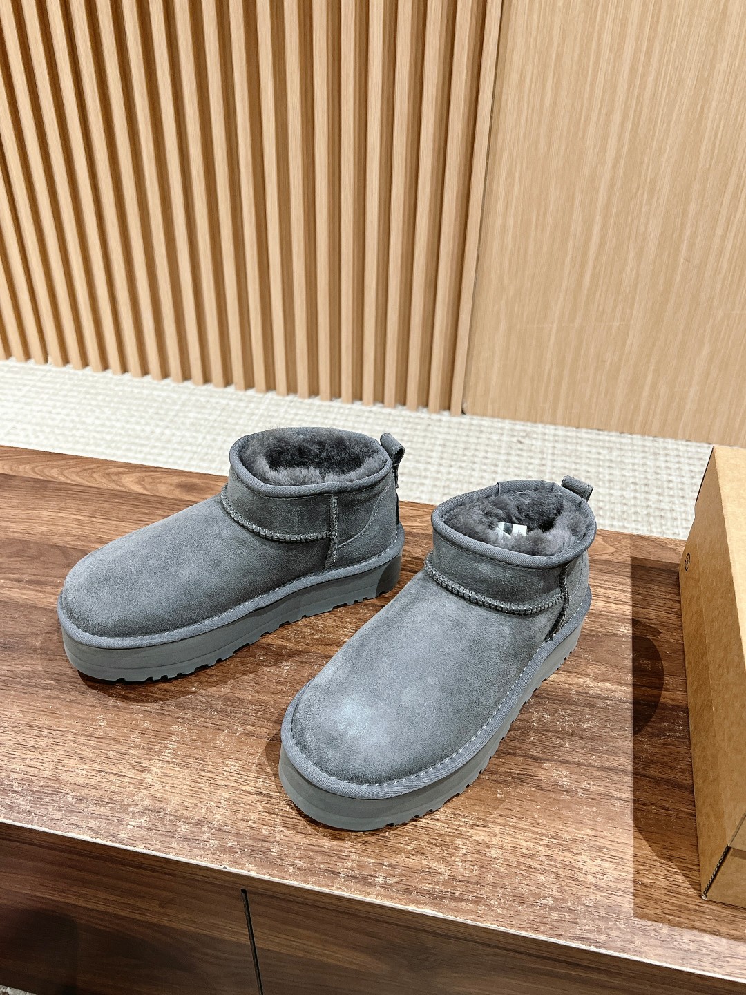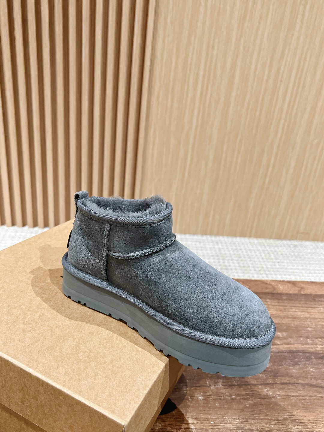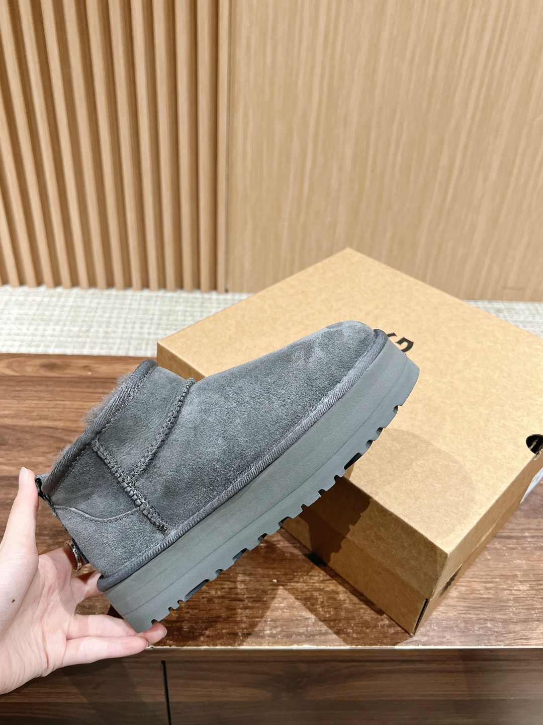 UGG Mini# Thick-soled furry snow boots. A style endorsed by Bella and Gigi, extremely popular. Paired with a pair of scrunch socks, it looks both high-end and fashionable, pure American style. The thick sole accentuates long legs. Luxuriant and thick genuine fur. Size: 35-39 (40 custom-made, non-returnable).