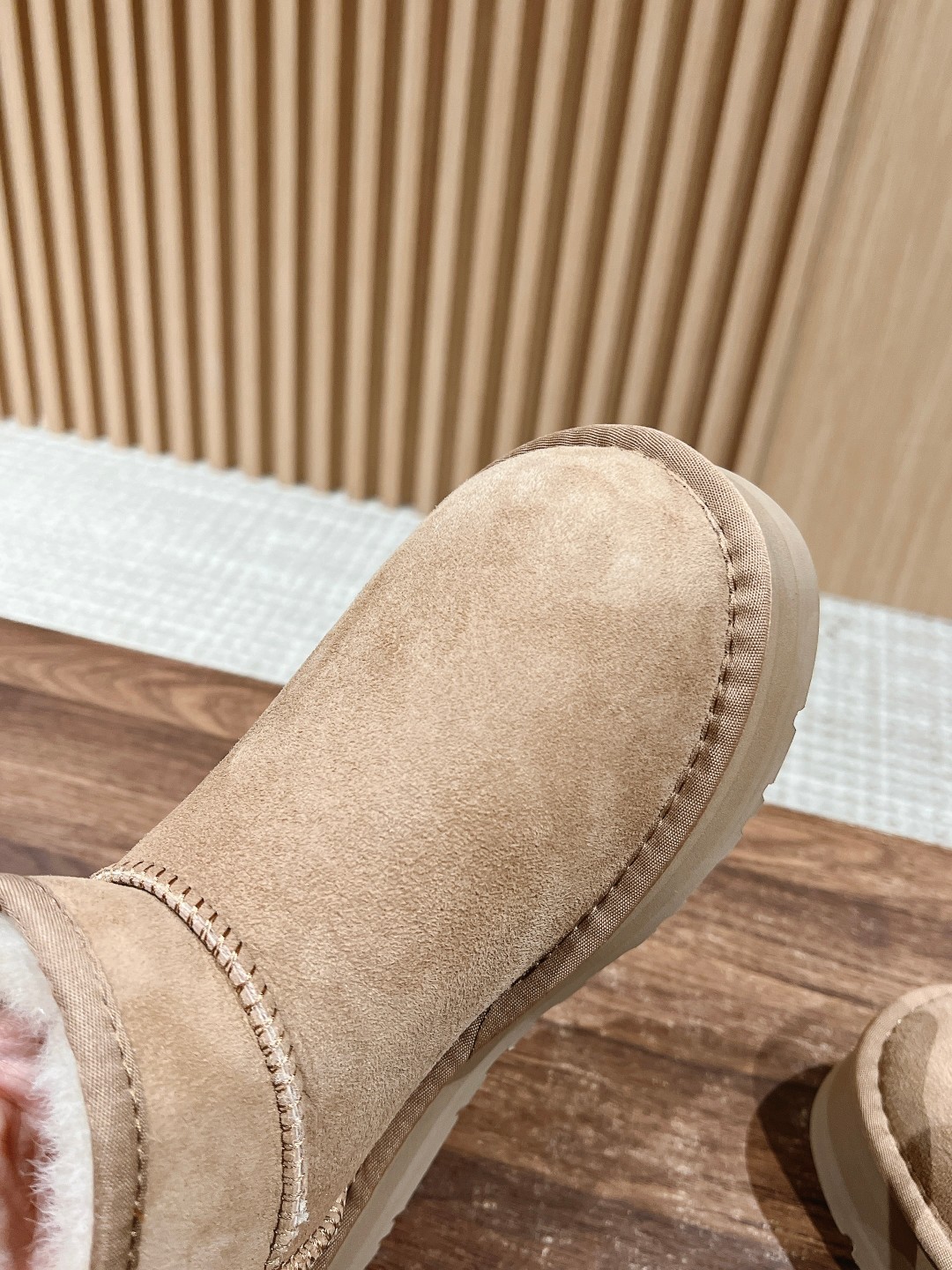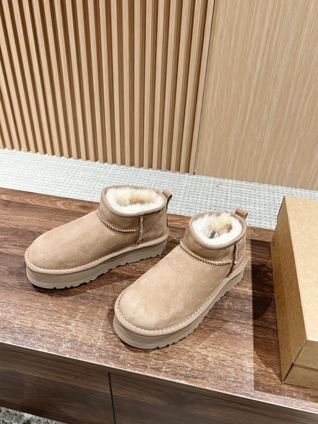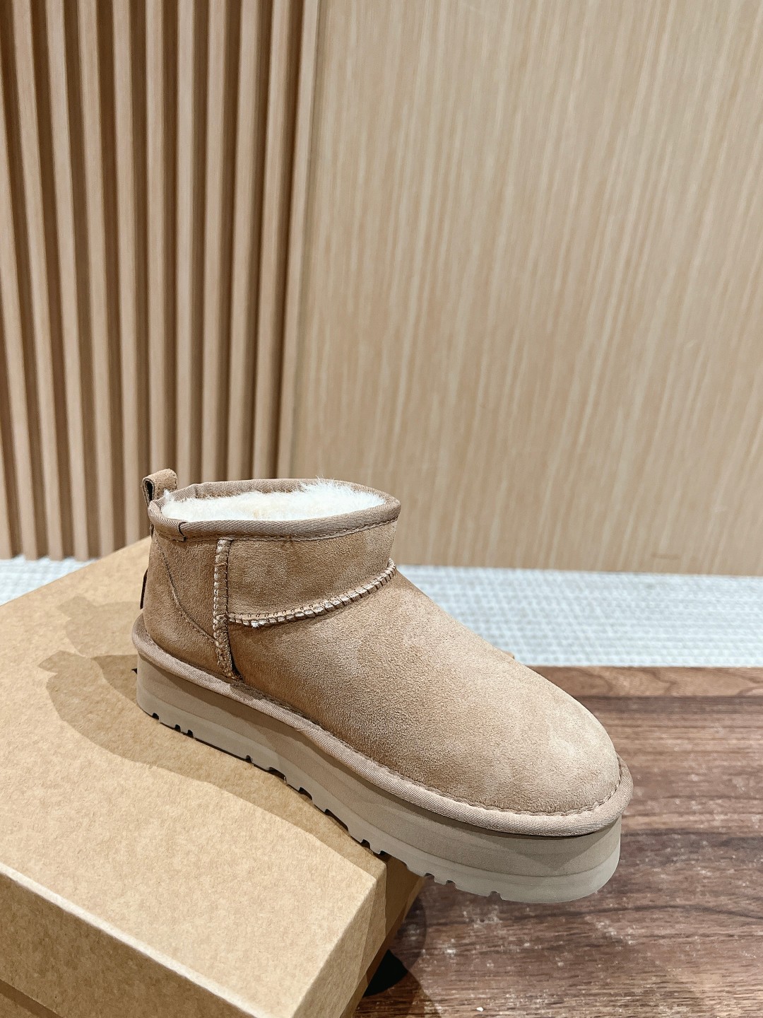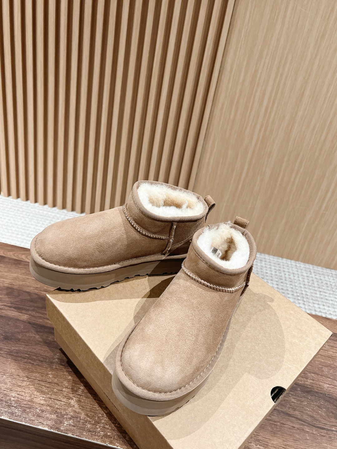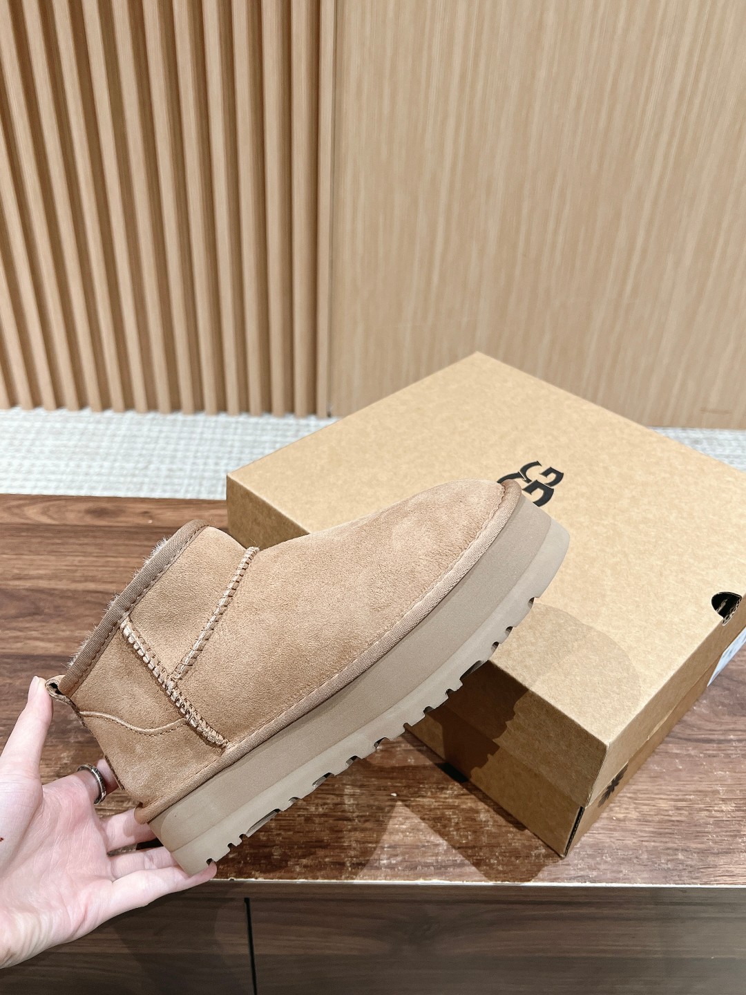 UGG Mini# Thick-soled furry snow boots. A style recommended by Bella and Gigi, extremely popular. Paired with a pair of scrunch socks, it looks both high-end and stylish, purely American fashion. The thick sole accentuates long legs. Luxuriously thick and integrated fur. Size: 35-39 (40 custom-made, non-returnable).