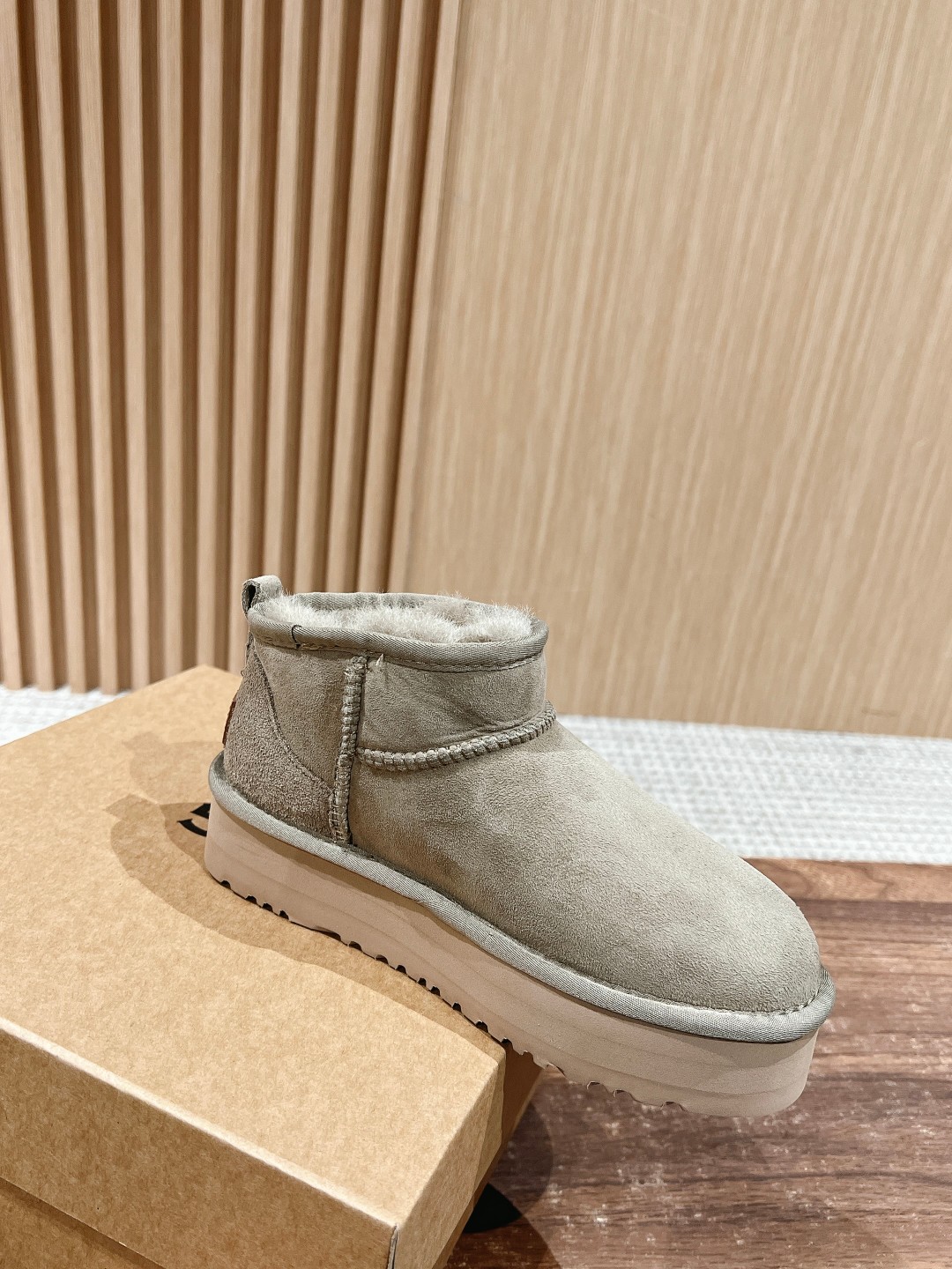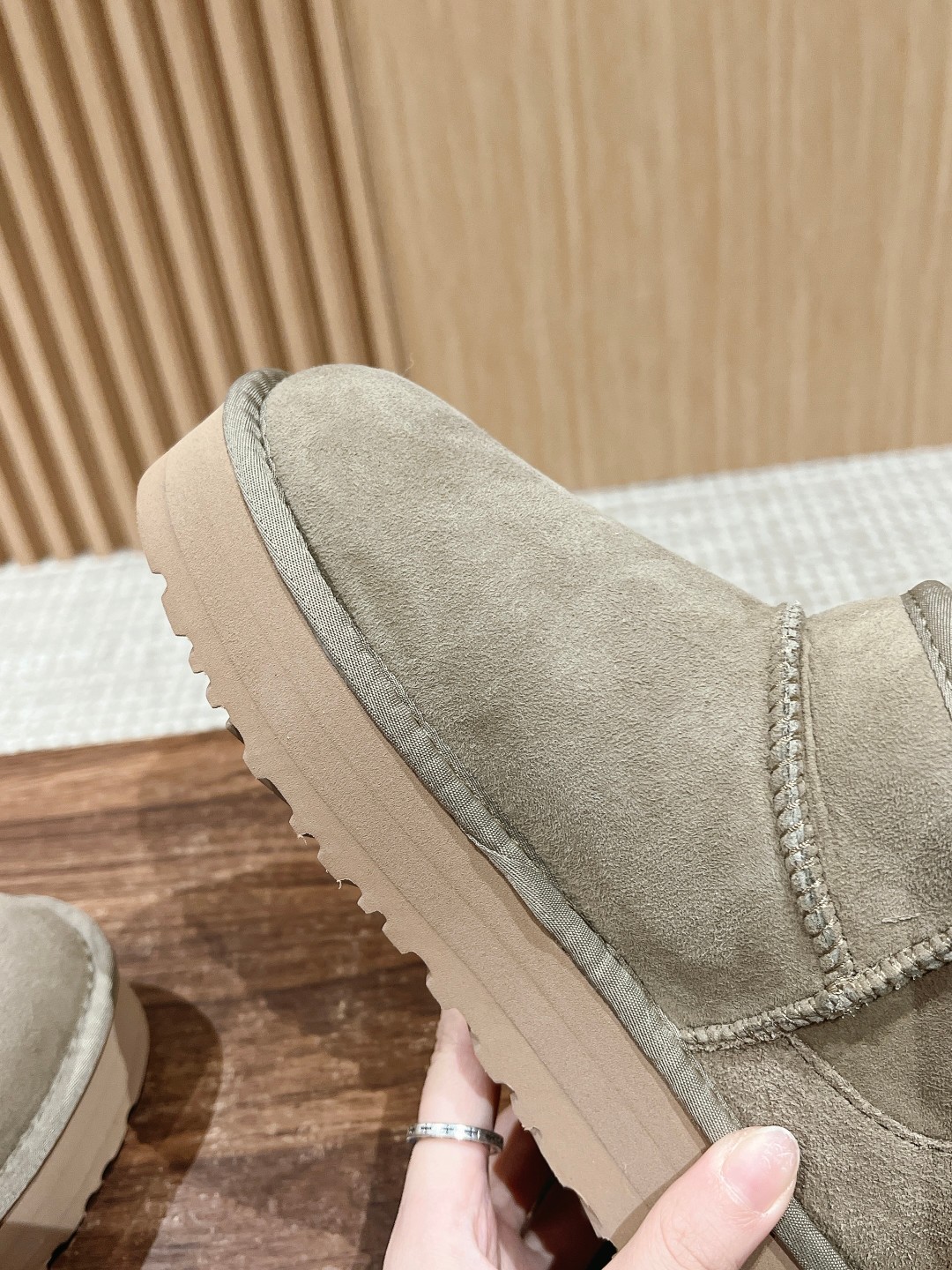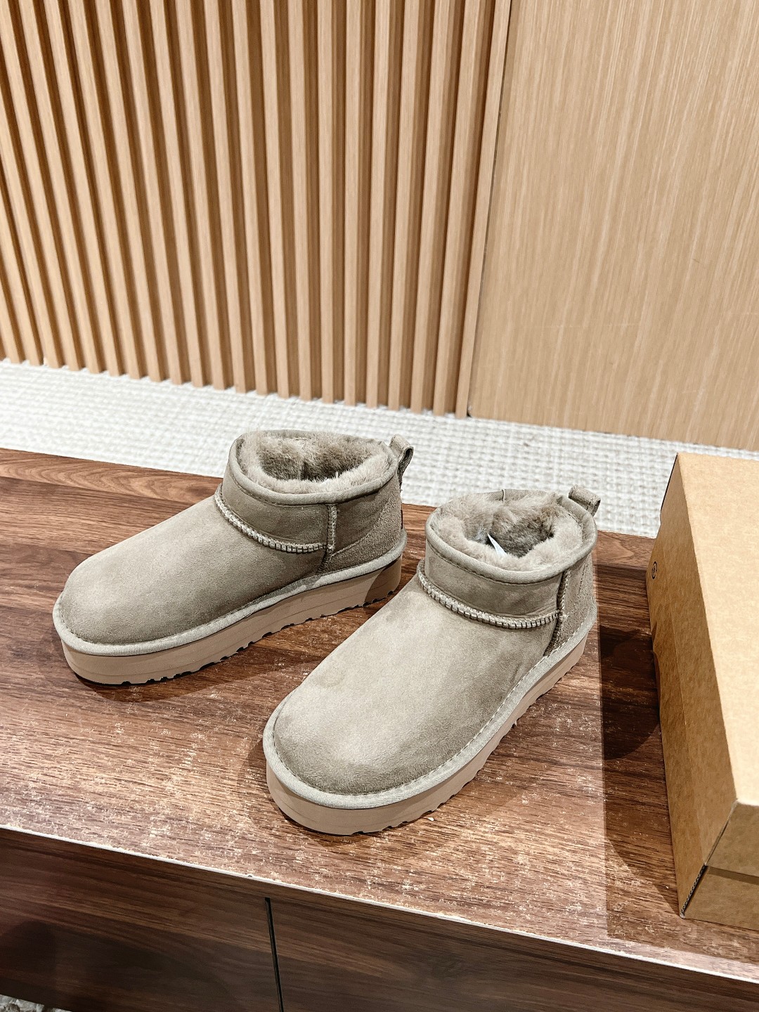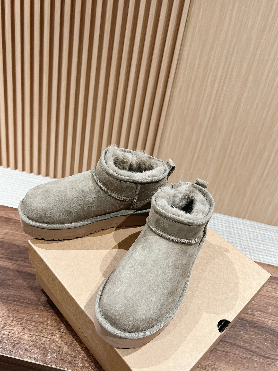 UGG Mini# Thick-soled furry snow boots. A style endorsed by Bella and Gigi, extremely popular. Paired with a pair of scrunch socks, it looks both high-end and stylish, pure American fashion. The thick sole accentuates long legs. Luxuriant and thick genuine fur. Size: 35-39 (40 custom-made, non-returnable).