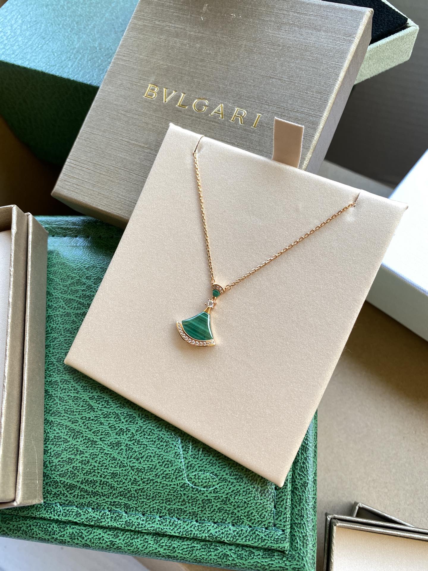 Upgraded BV Necklace Series, 18K Gold Plated with Emerald, Includes BVLGARI Box, Water-Resistant.