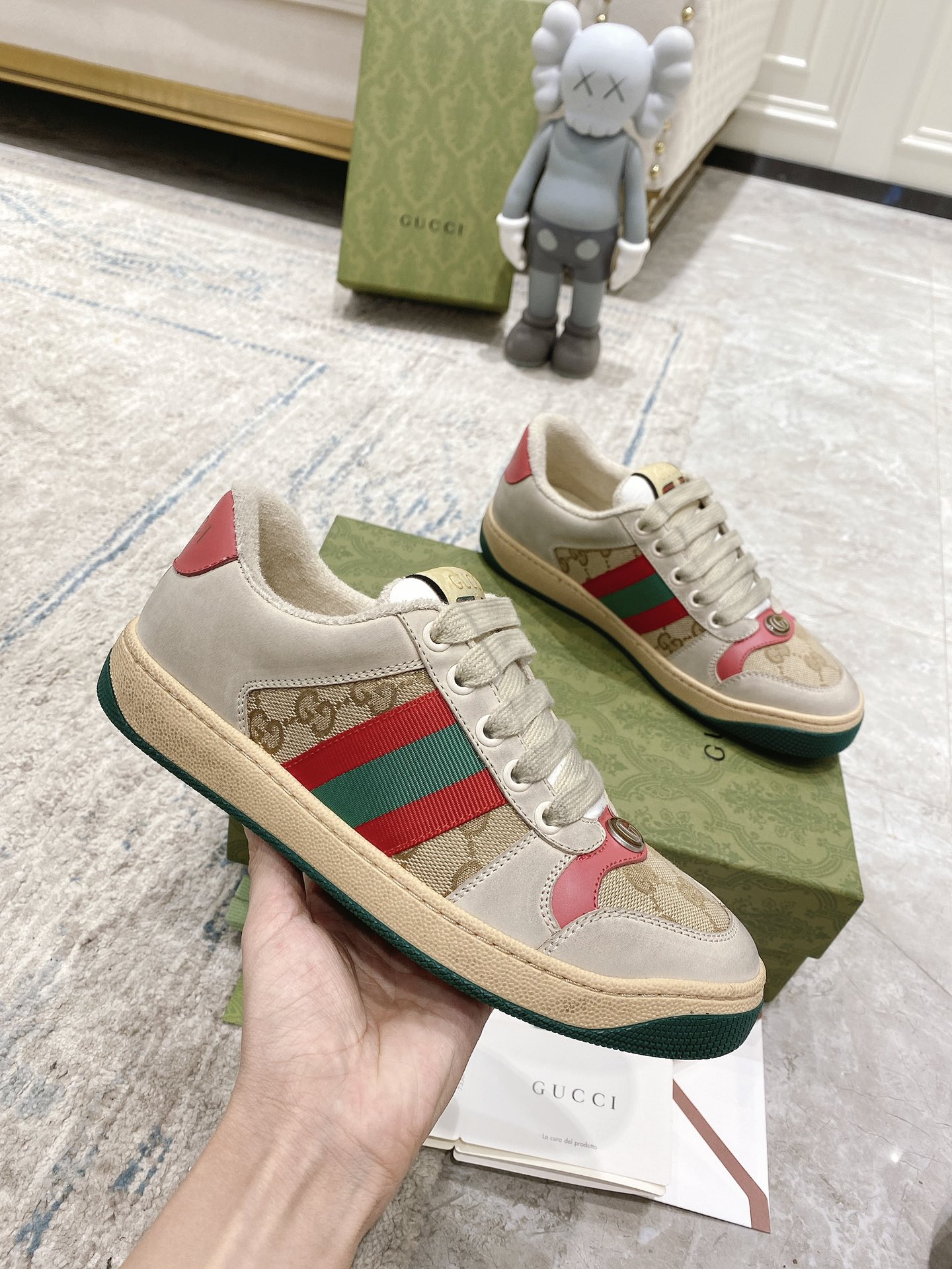 Newly upgraded, highest version, couple style, full color range, long-term production ~ G brand Gucci ultimate classic distressed little dirty shoes - super versatile all-season style. Developed from the original version. All details perfectly match the original: shoe shape, fabric, material, sole, details can be compared freely! Original waxed cowhide fabric, hand-distressed for a very textured feel. Original towel lining is fine, soft, more comfortable, and breathable. Original TPU sole. Sizes: women's 35-40, men's 39-44. Men's sizes add 10.