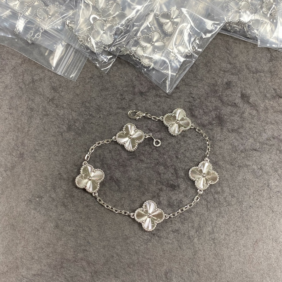 V Gold Material V Family Four-Leaf Clover Five-Flower High-End Engraved Bracelet