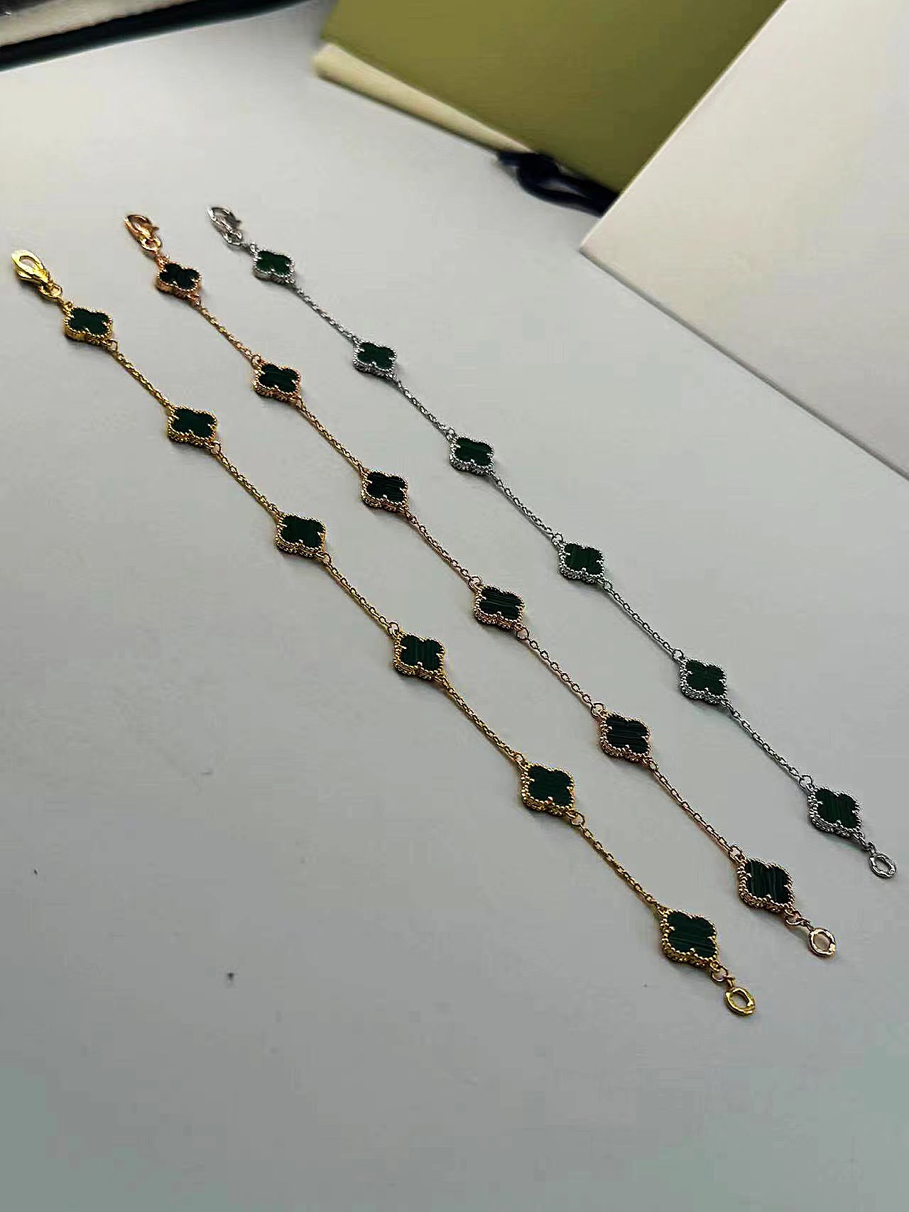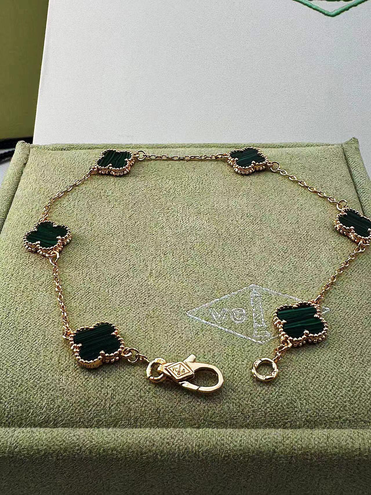 V-gold version mini six-flower green malachite Vca Van Cleef & Arpels super invincible classic four-leaf clover timeless style classic four-leaf clover mini bracelet not only classic and durable but also super versatile made of imported s925 pure silver material electroplated with thick gold super beautiful silver gold rose gold three colors available