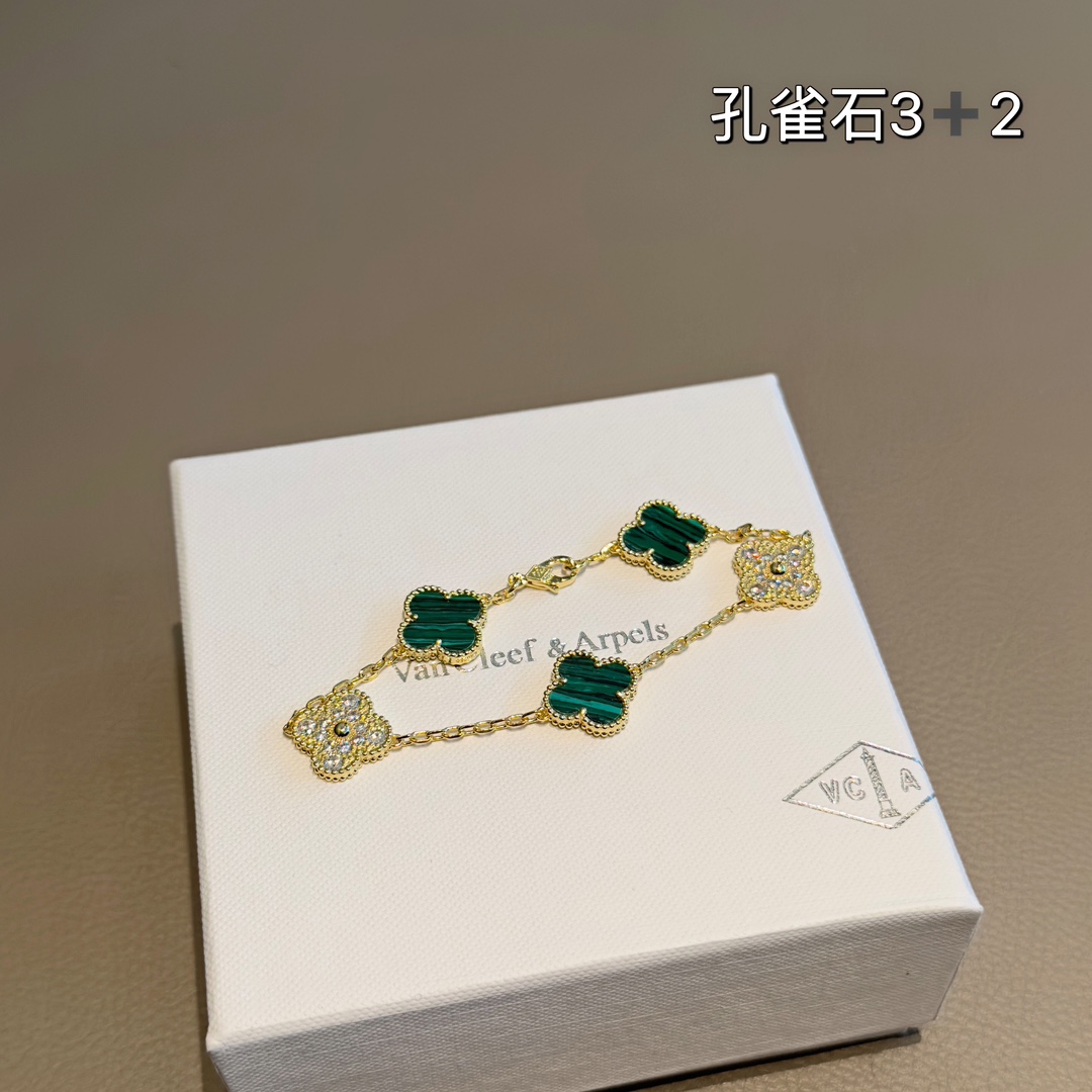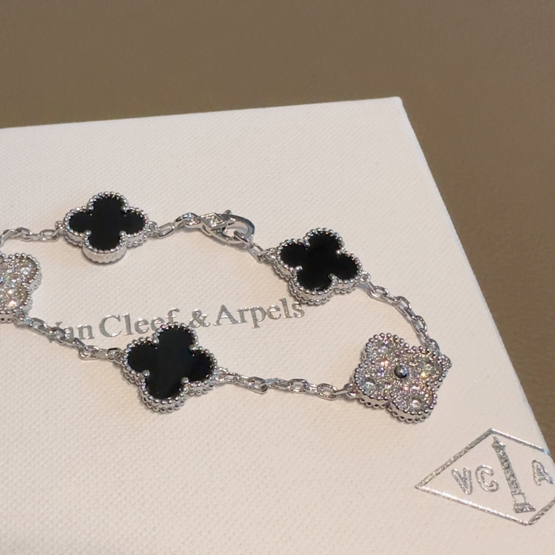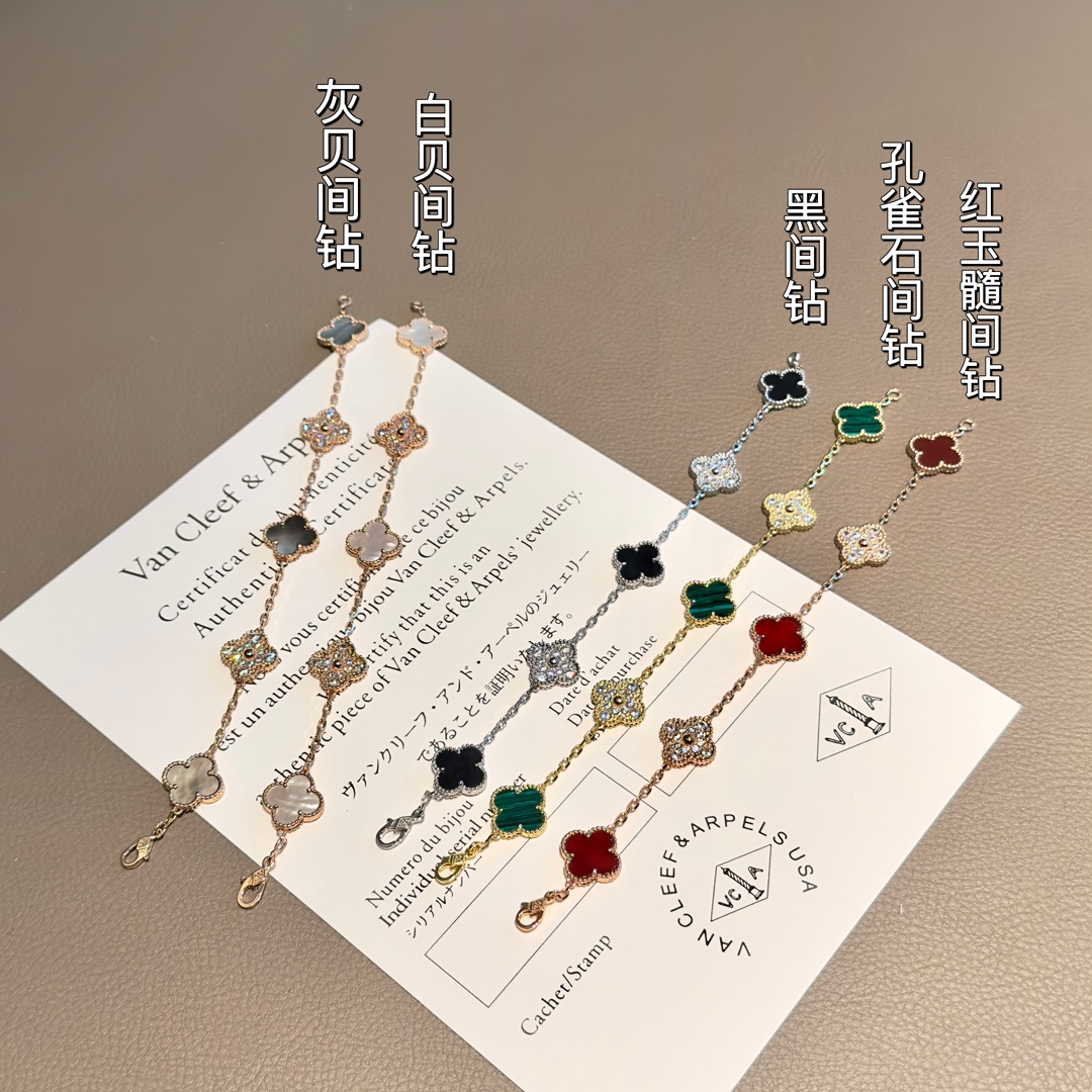 VCA Van Cleef & Arpels Four-leaf Clover Half-flower Half-diamond 3+2 Five-flower Bracelet White Shell/Gray Shell/Black Onyx/Red Carnelian/Malachite