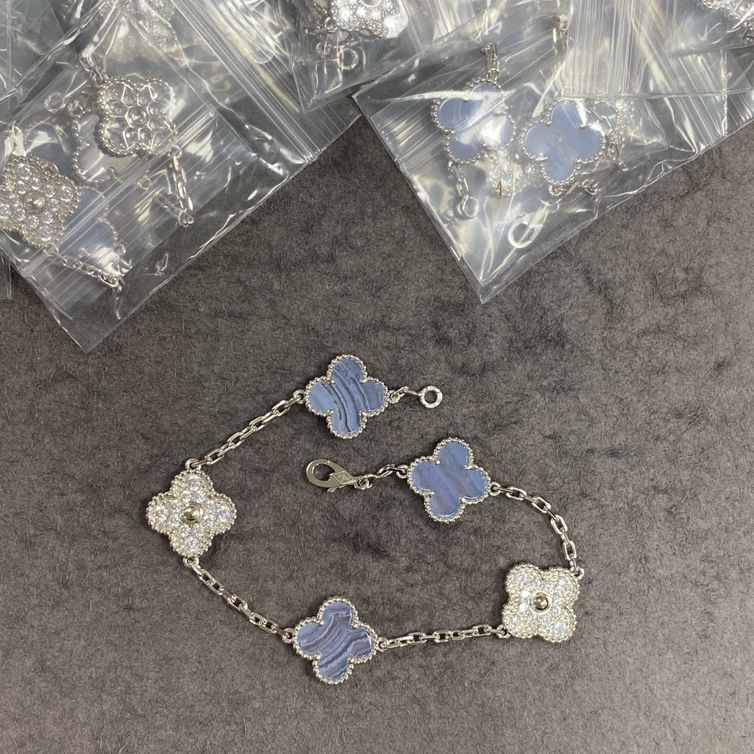 VCA Natural Carnelian + Diamond Five-Flower Four-Leaf Clover Bracelet