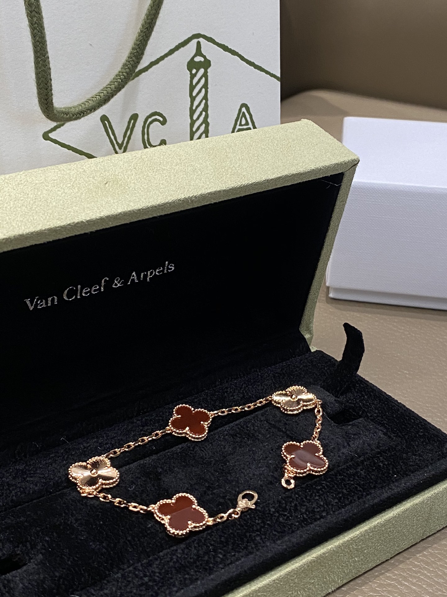 VCA Red Five-Flower Laser Bracelet CNC Buckle Complete Set Packaging
