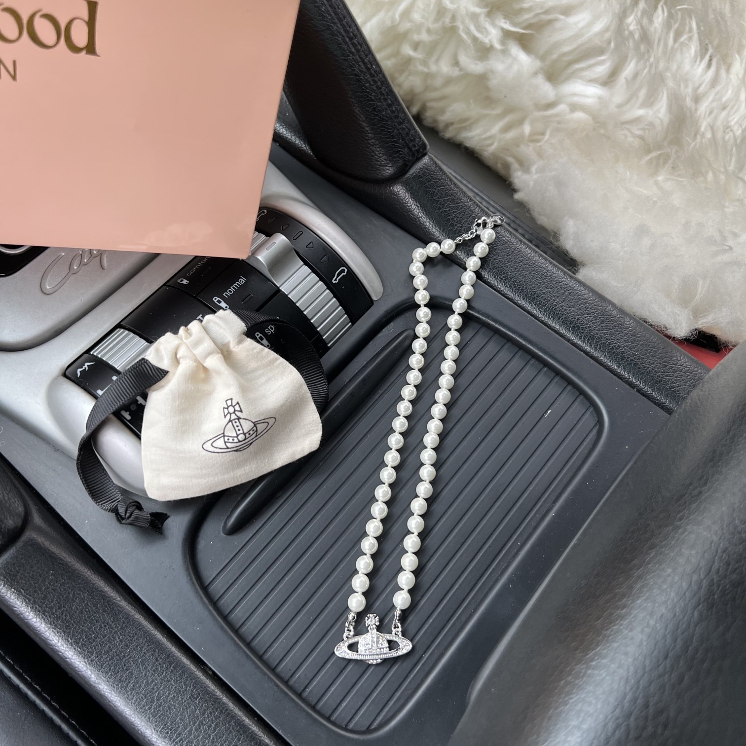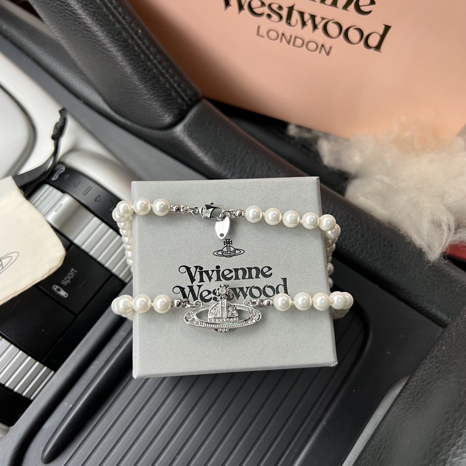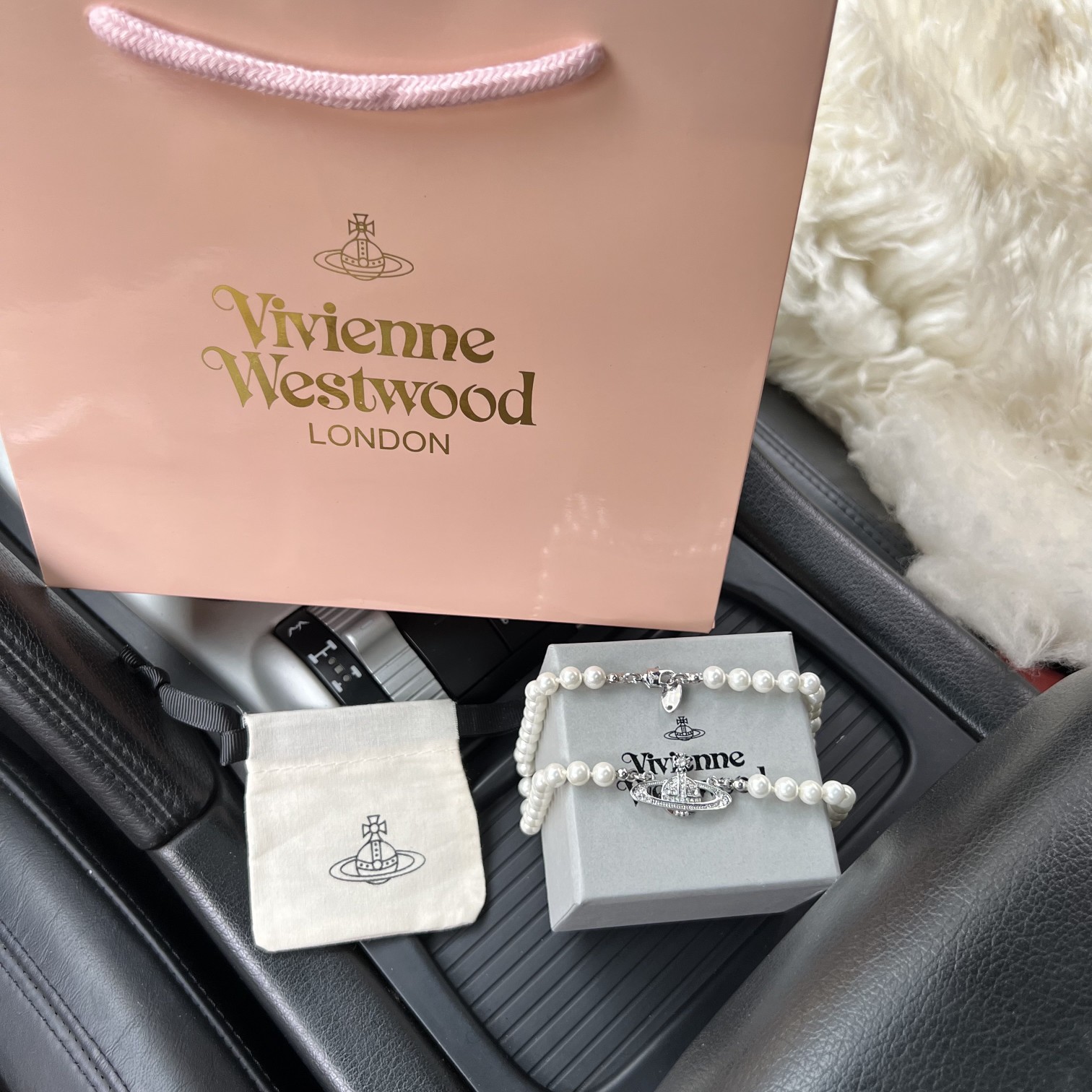 Vivienne Westwood Pearl Necklace If all goes well, I can wear this Vivienne Westwood all summer long!! 7-8mm natural high-quality freshwater pearl, length 41-46 adjustable silver clasp version! It sits right at the collarbone line! Paired with low-cut clothes, it superbly highlights elegance!!
