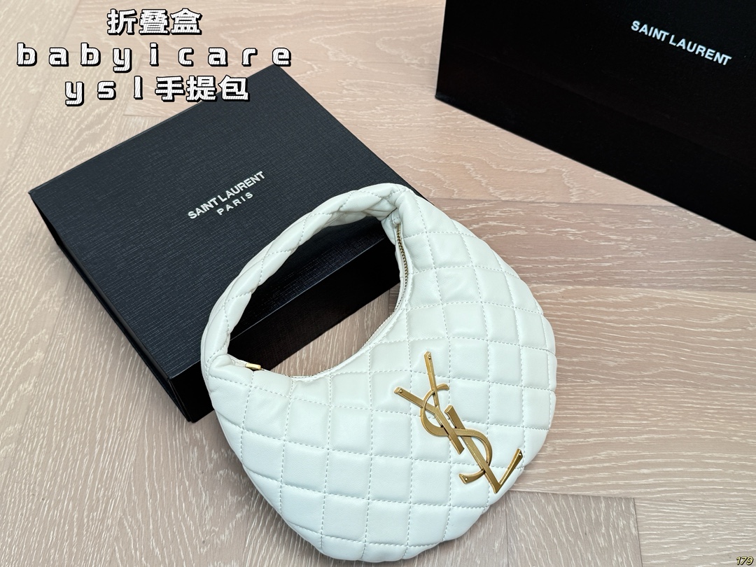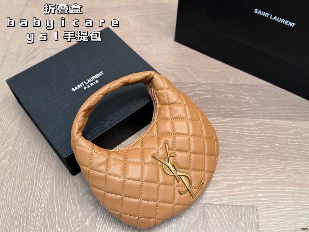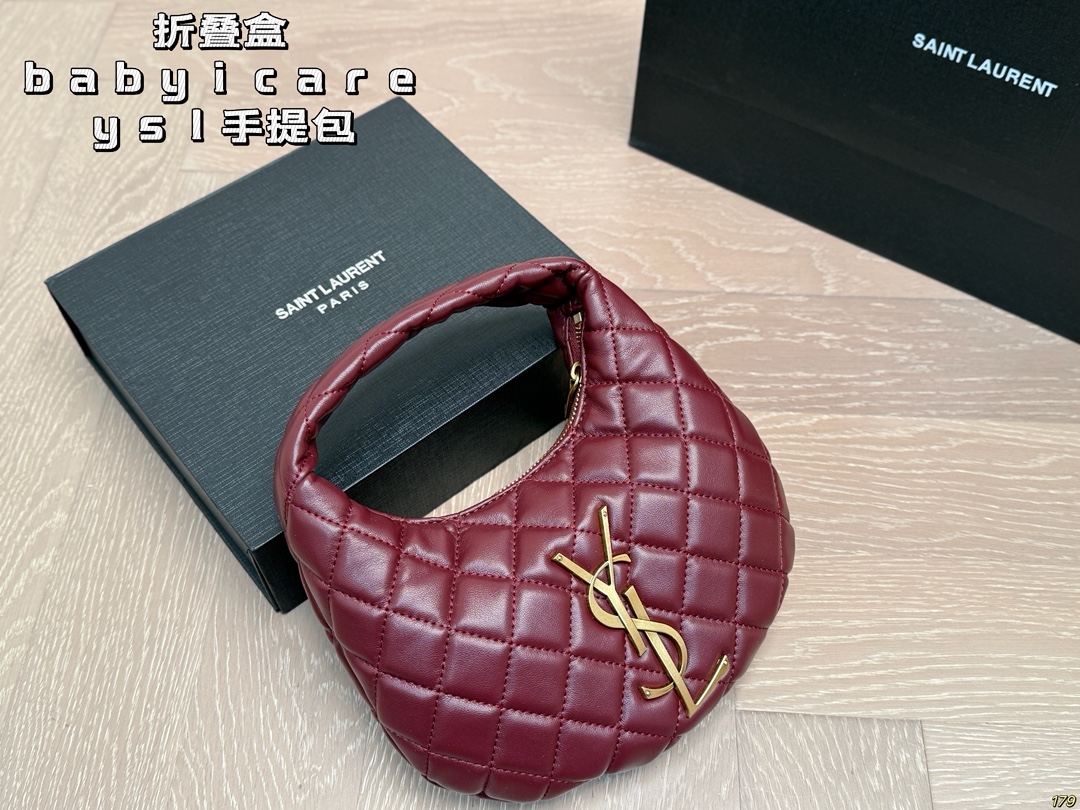 YSL Baby Icare black handbag in 4 colors. Soft lambskin, gold accents, lightweight, 24x14cm size.