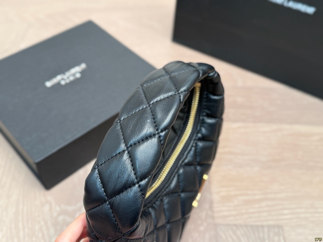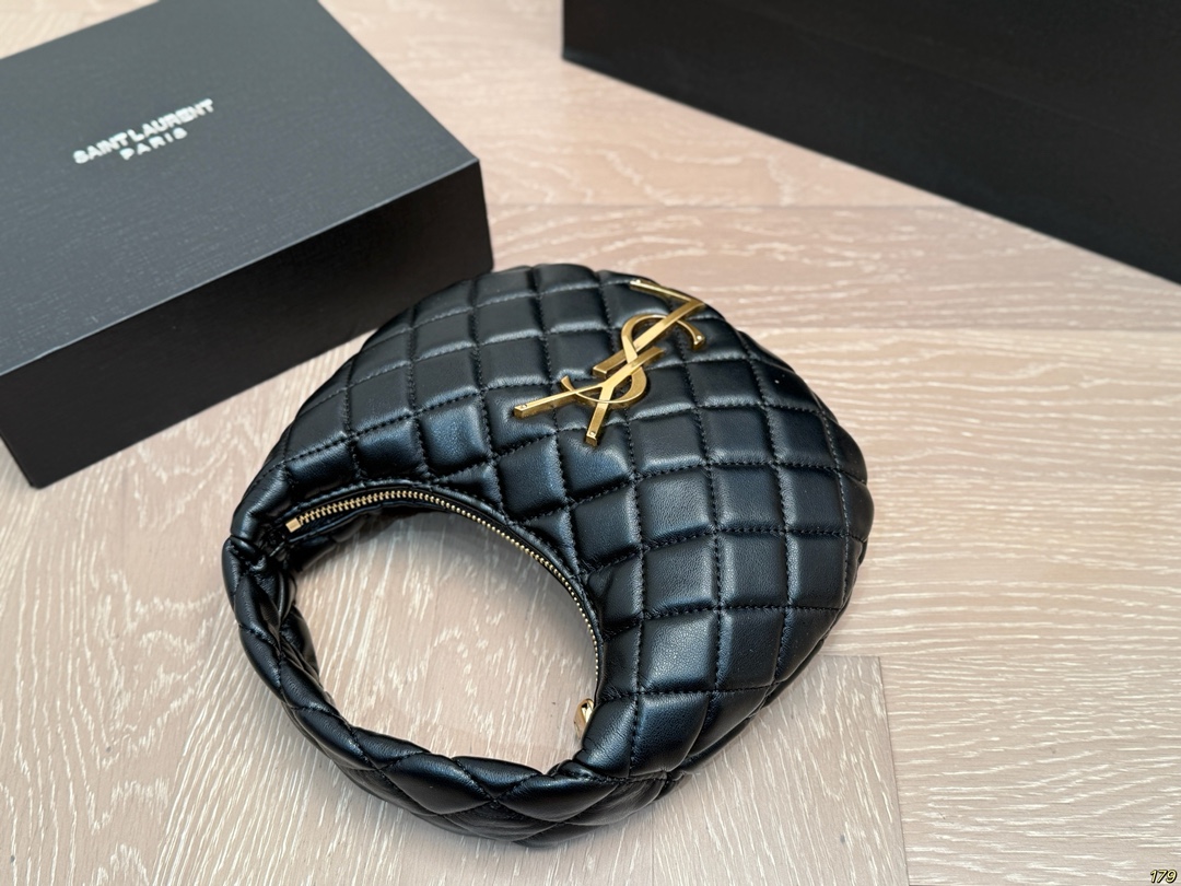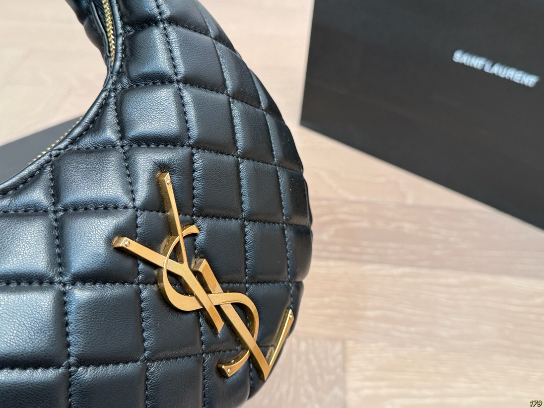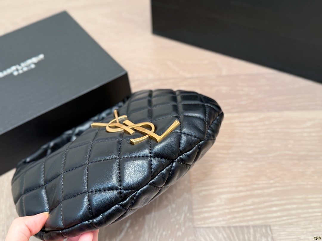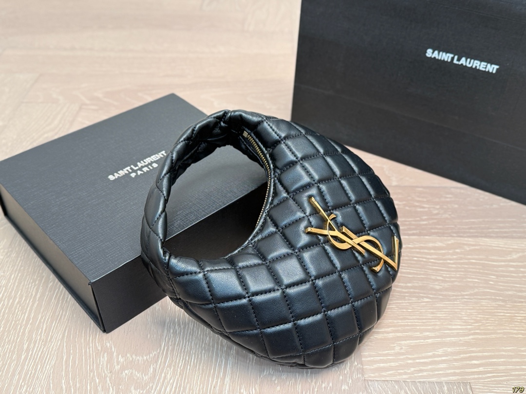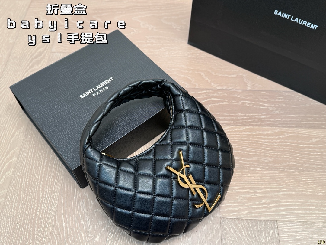 YSL Baby Icare black handbag, luxurious lambskin, lightweight design.