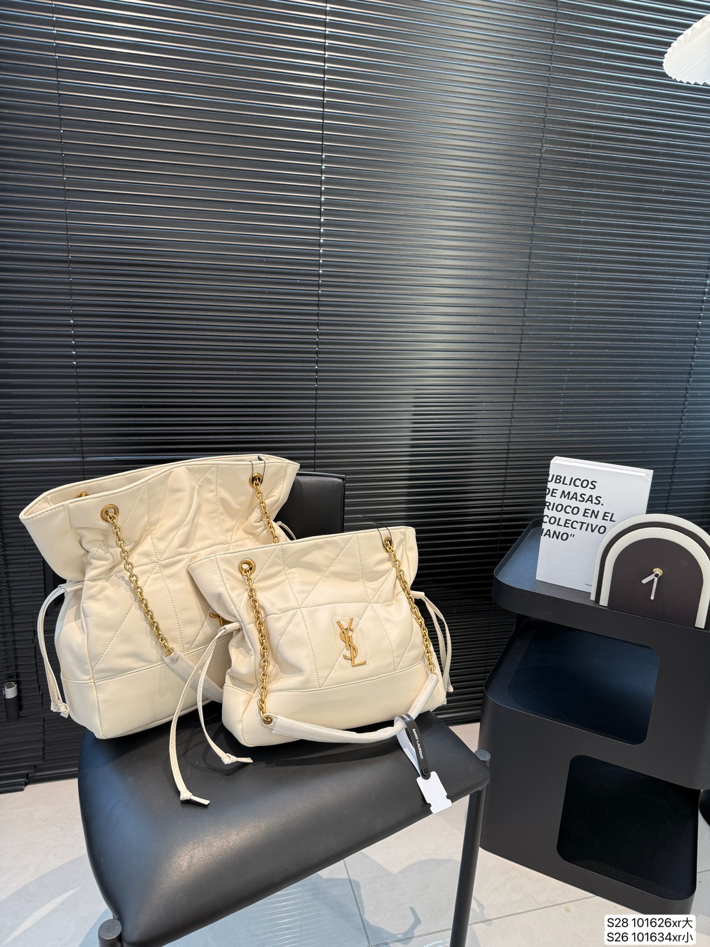 YSL Jamie bag in large and small sizes with box. Elegant design for daily essentials, showcasing a relaxed yet stylish attitude.