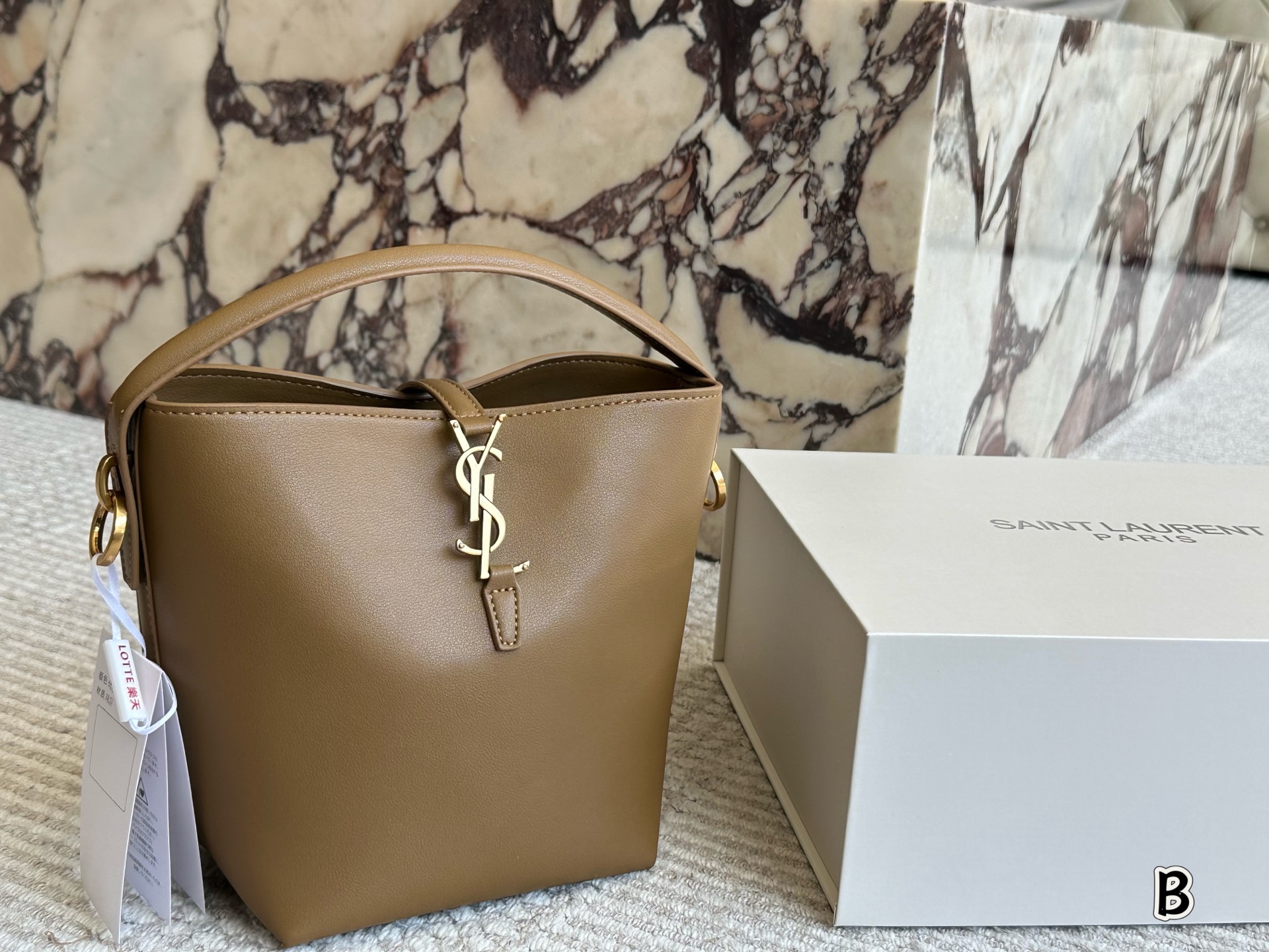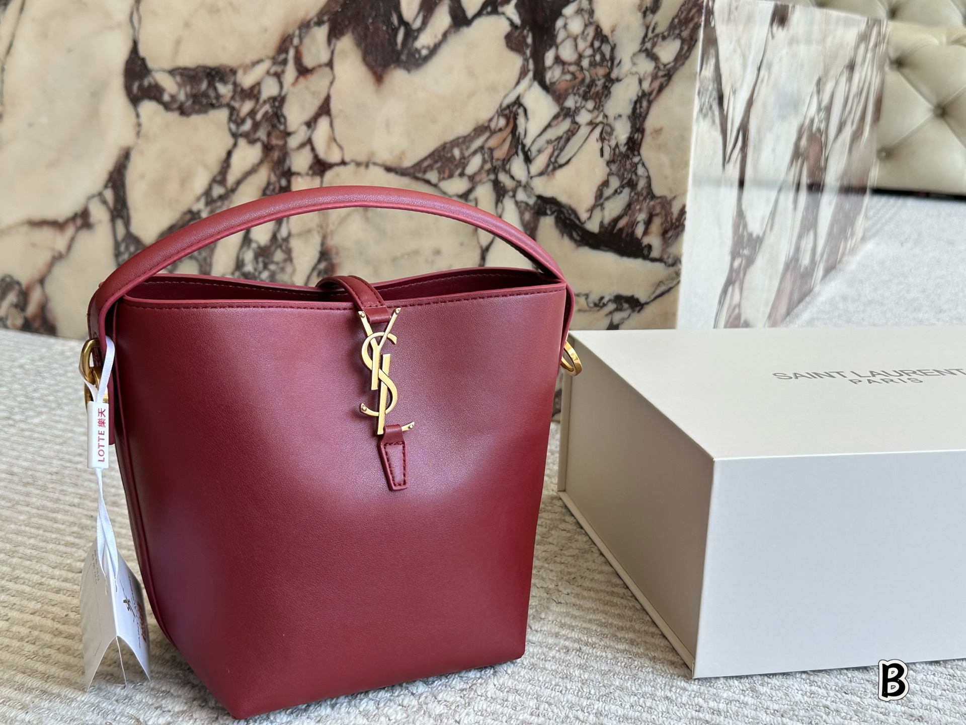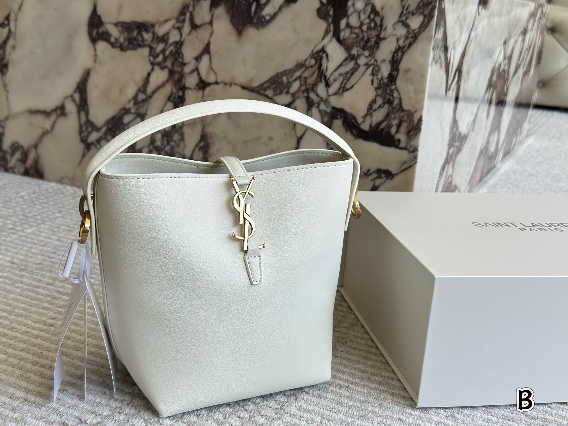 (With box) Size: 16*20cm (Small) YSL Saint Laurent | Le37 The bucket bag is incredibly cute!!!! Can be carried by hand, on the arm, or with a shoulder strap for single-shoulder wear~ Multiple ways to carry~ The leather is fine and comfortable!