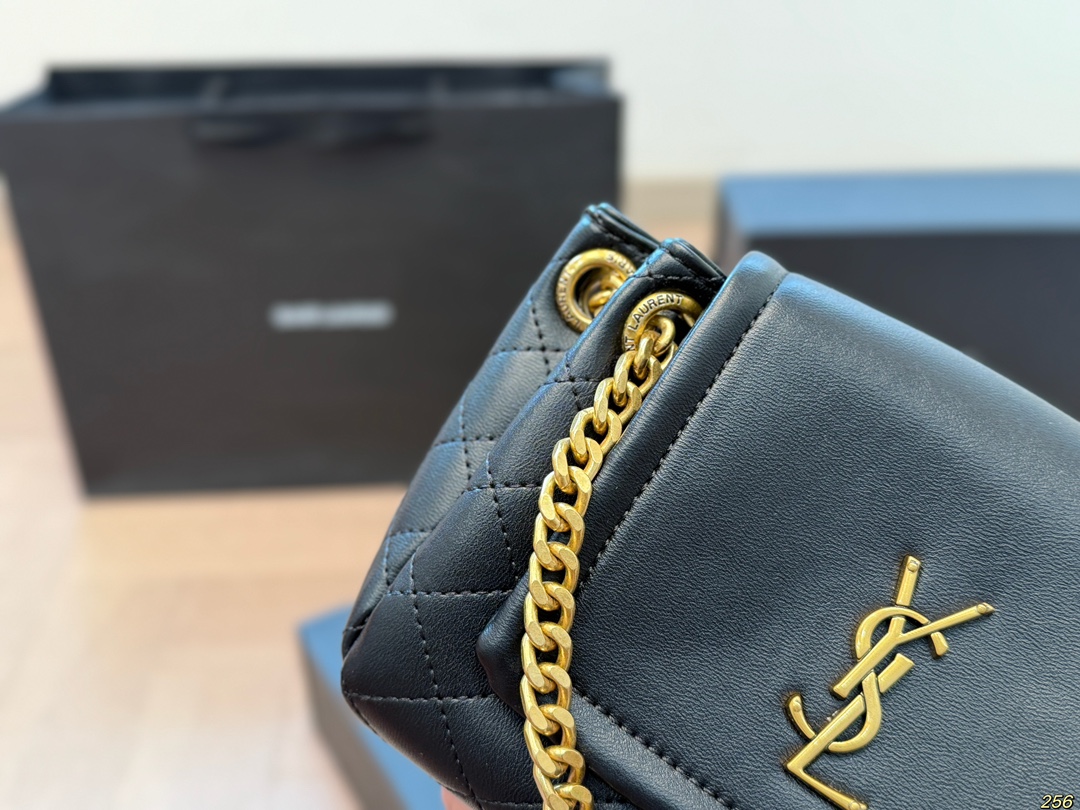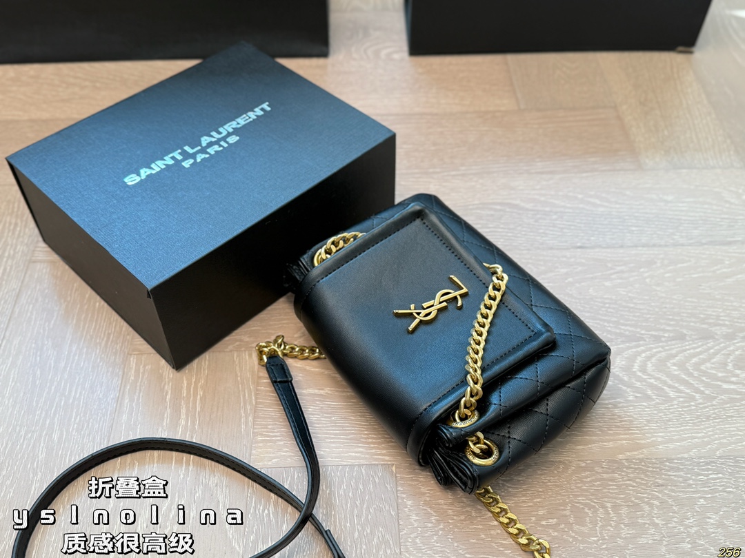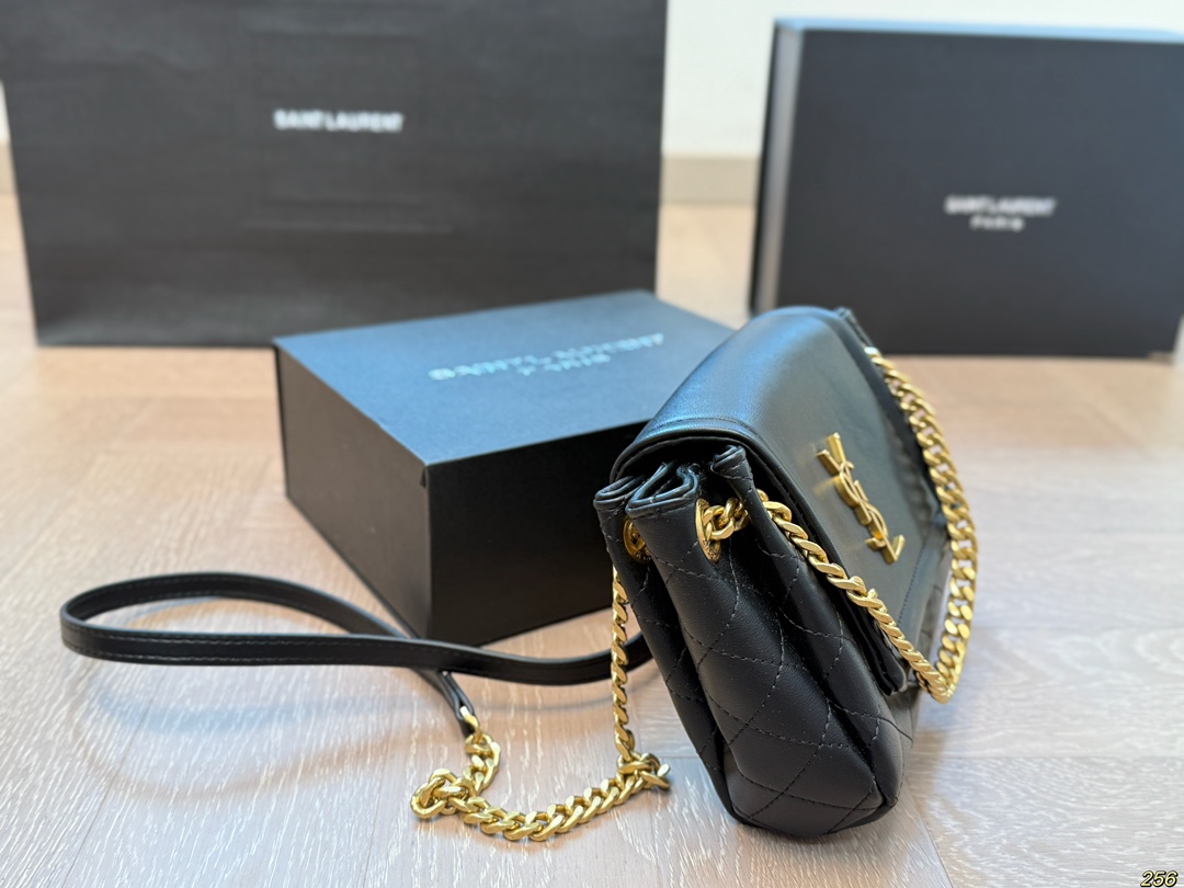 YSL Monogram Nolita bag, flap with metal YSL logo, quilted stitching, chain and leather strap, dual carry, magnetic clasp, bronze hardware.