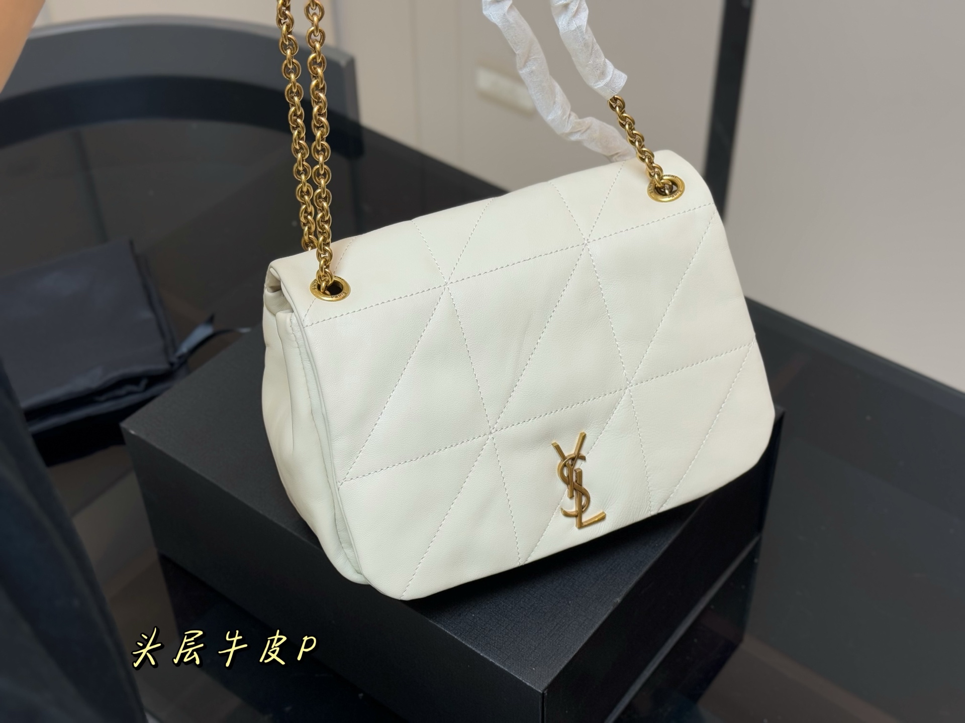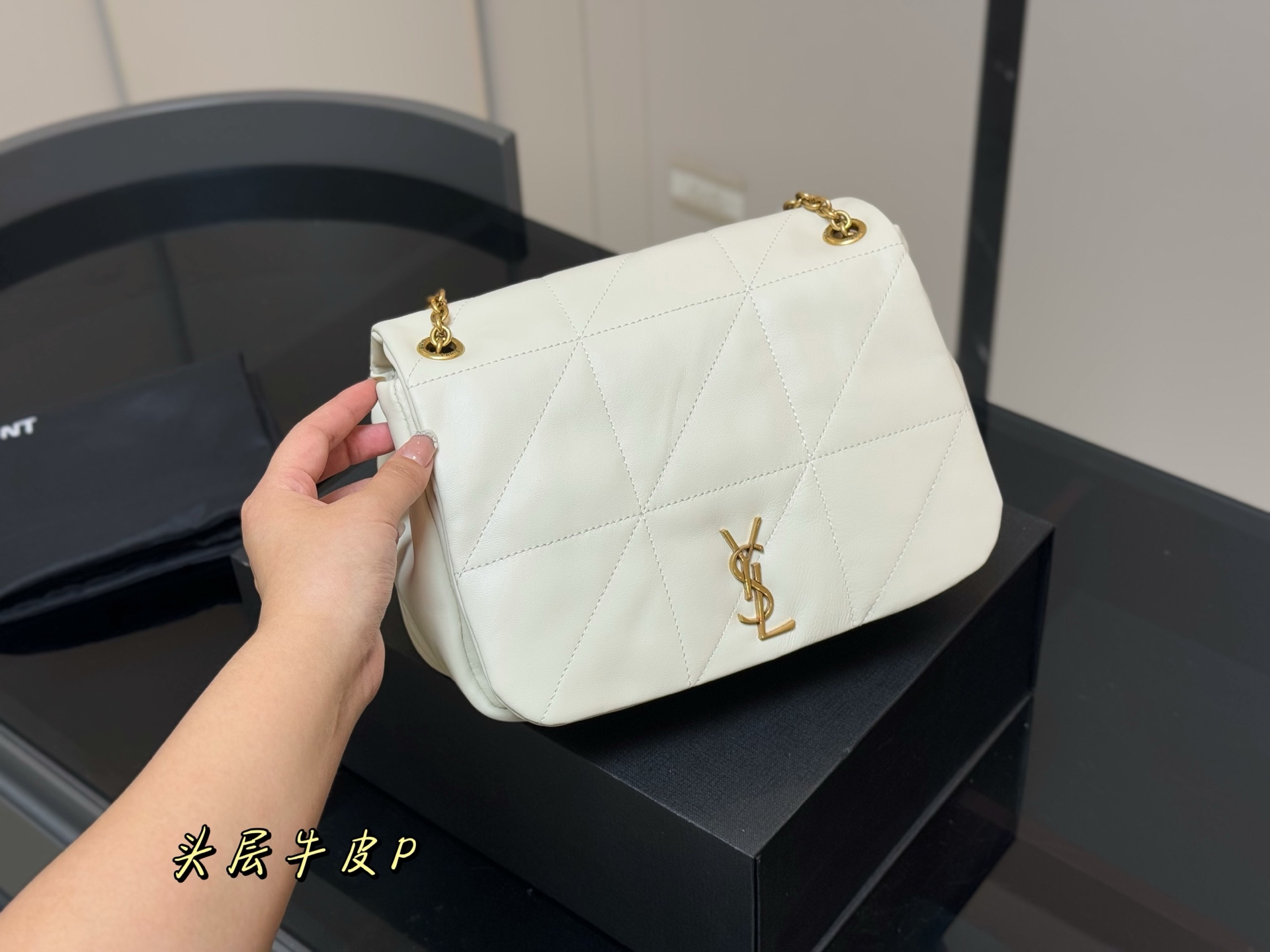 YSL new chain bag Jamie. Ultra-fine leather, comfortable and durable. Jewelry-grade metal chain, exquisite details. Lazy, relaxed design for various occasions. Size: 25.17cm.