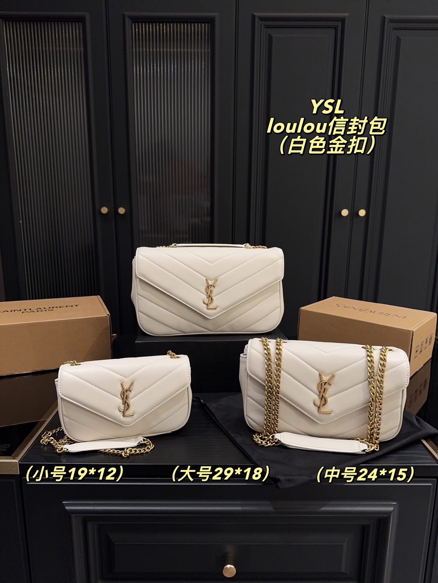 YSL New Loulou Envelope Bag. Available in large (29x18), medium (24x15), small (19x12). Soft, lightweight, and stylish. A must-have accessory.