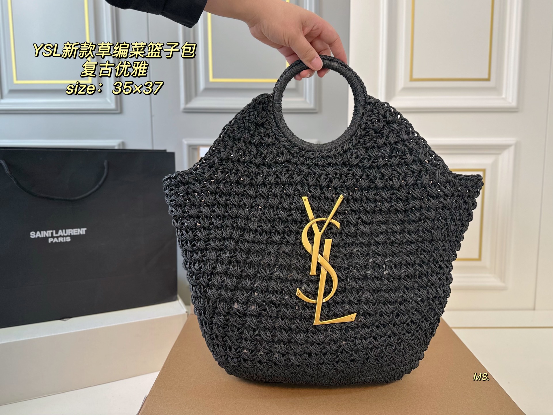 (With box) Size: 35×37 YSL Saint Laurent new straw tote bag Straw bag full of summer vibe Retro and elegant, exuding a sense of premium quality Moderate size, impressive capacity