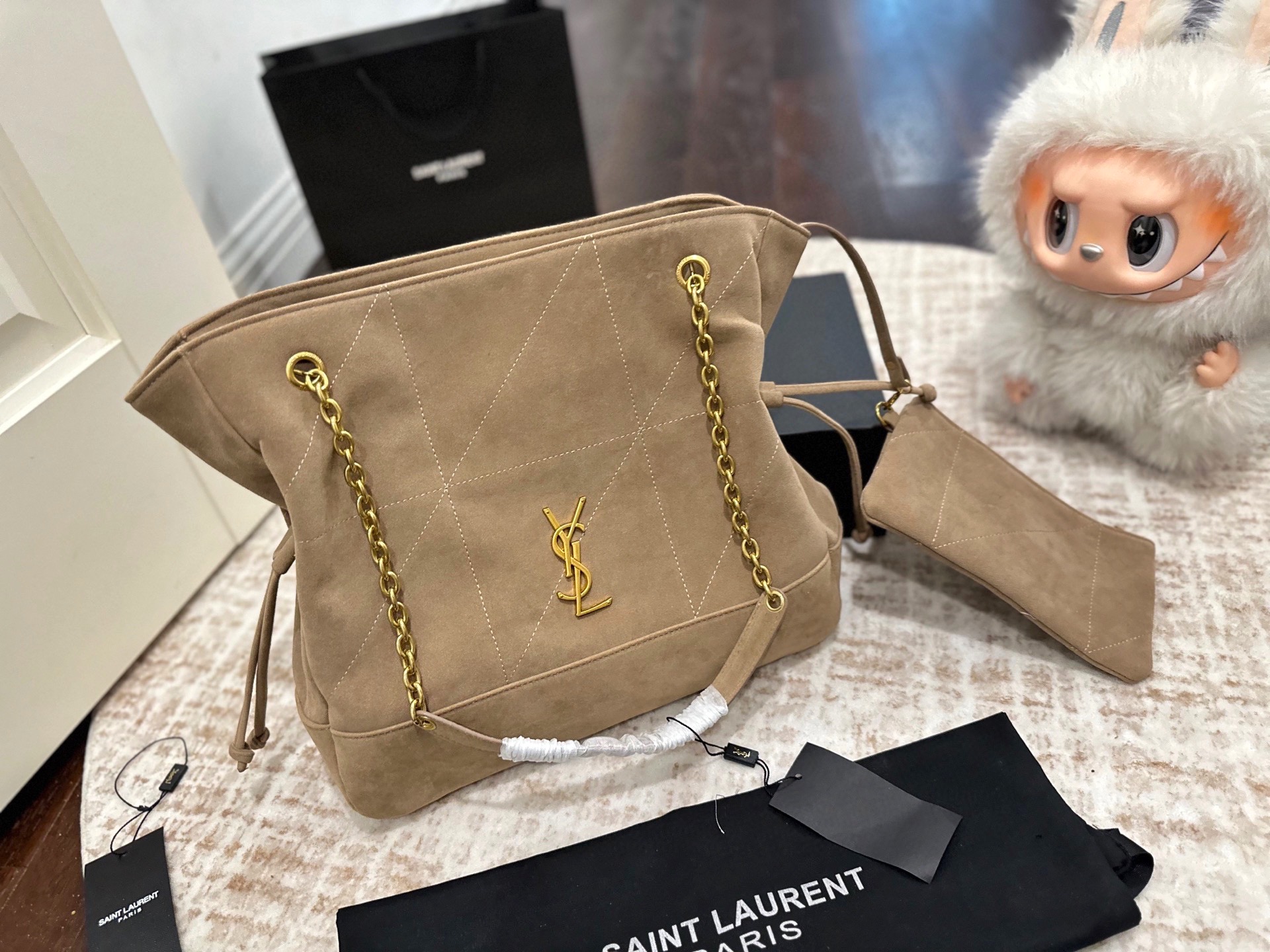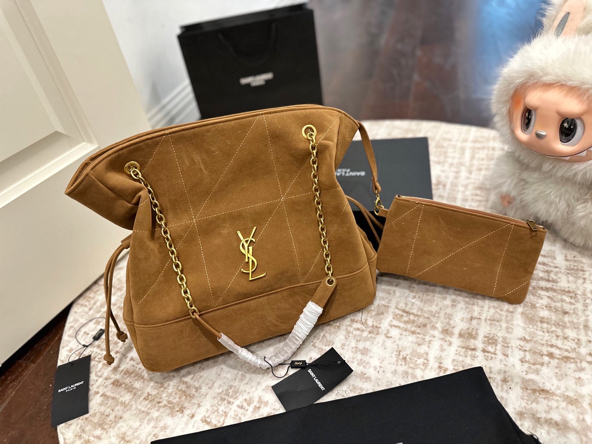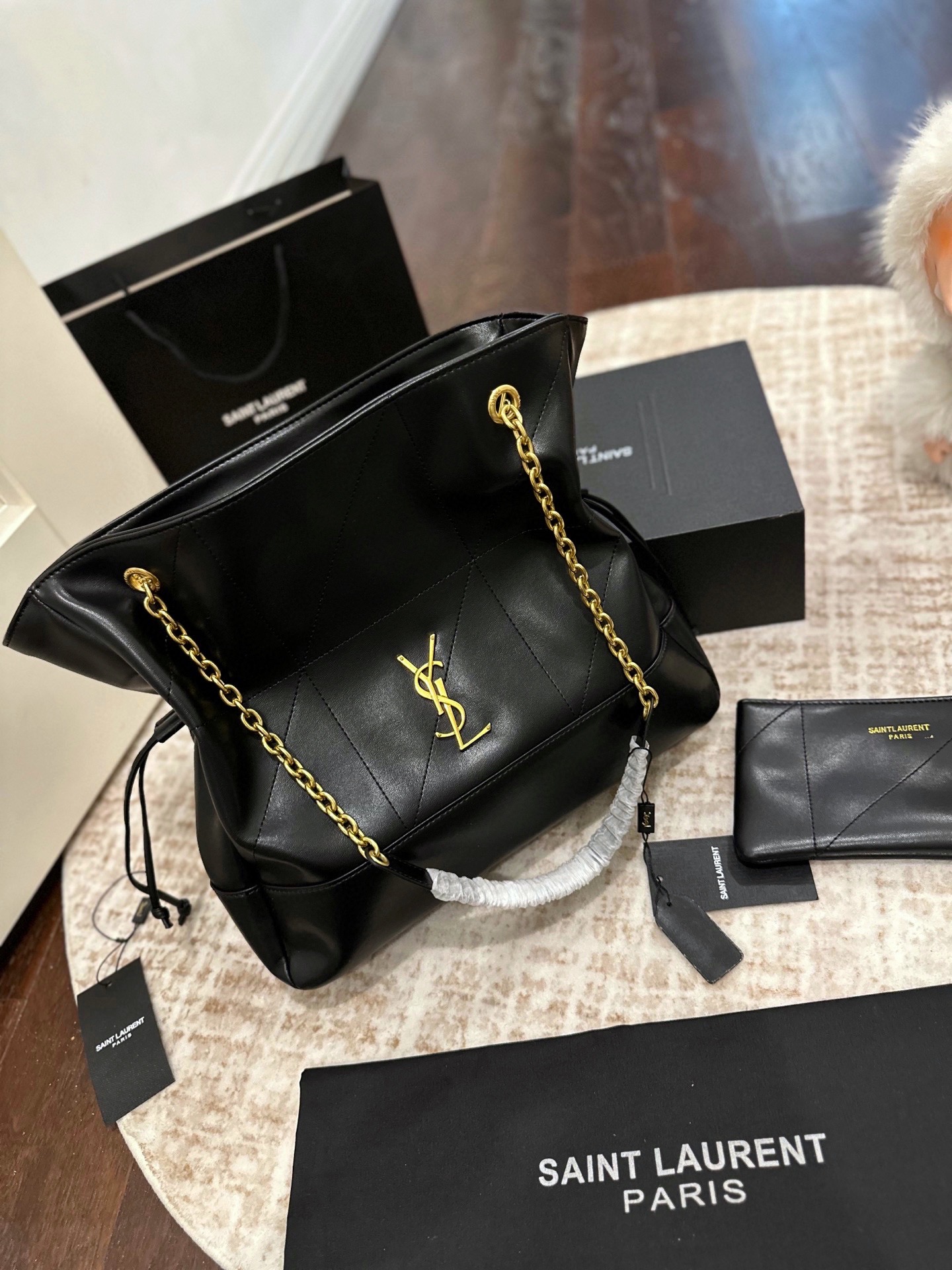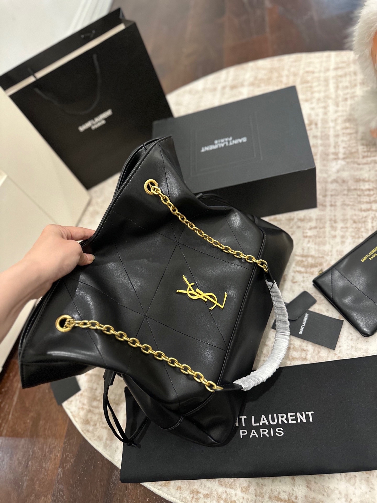 YSL new vertical "trash bag" bag, made of lambskin, smooth and shiny. Multiple carrying ways: hand-held, underarm, or cross-body. Size: 31*26.