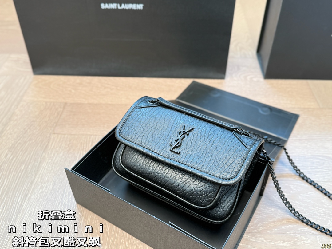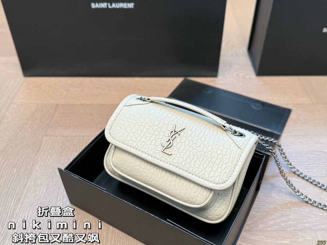YSL Nikimini crossbody bag, 5 colors, foldable box design. Size: 18x12. Stylish and luxurious.
