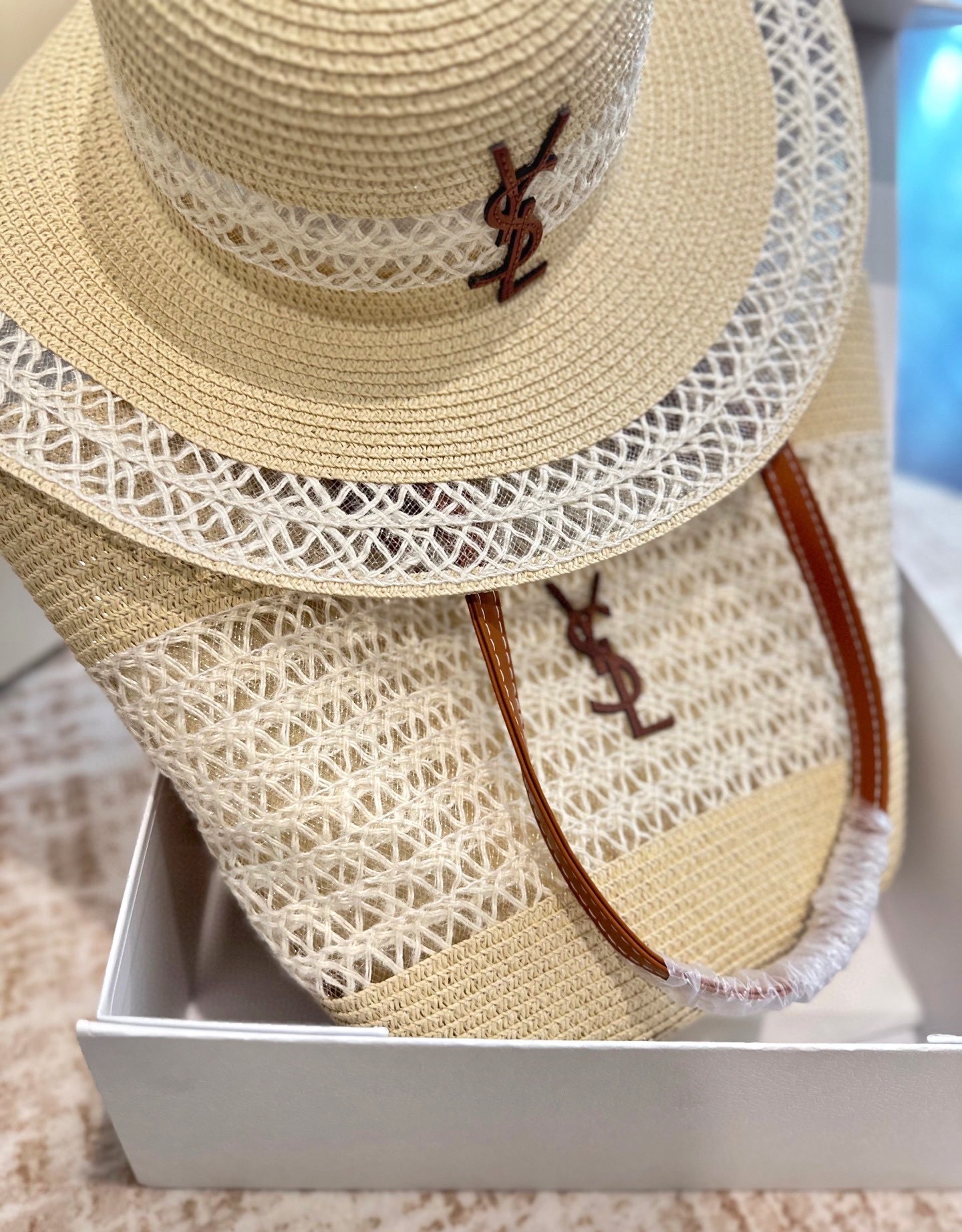 YSL straw hat and bag set, 28cm. Summer essential, highly sought-after. Get yours now!