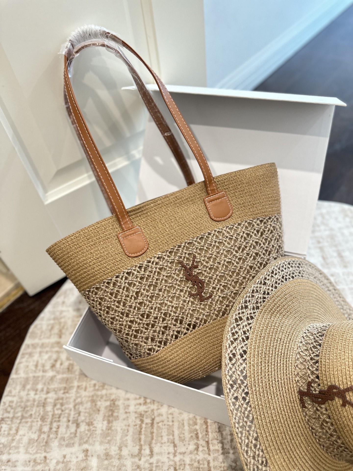 YSL straw hat and bag set, 28cm. Summer must-have, selling fast!