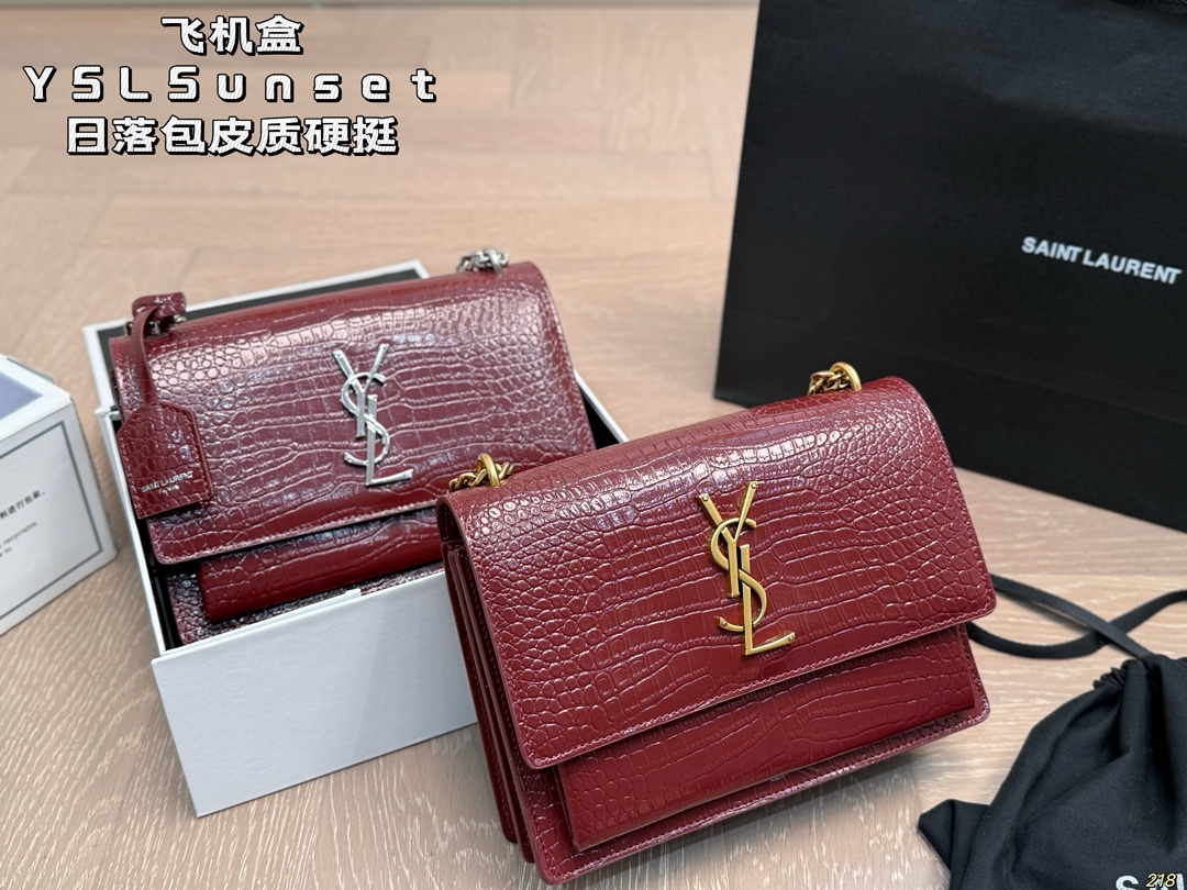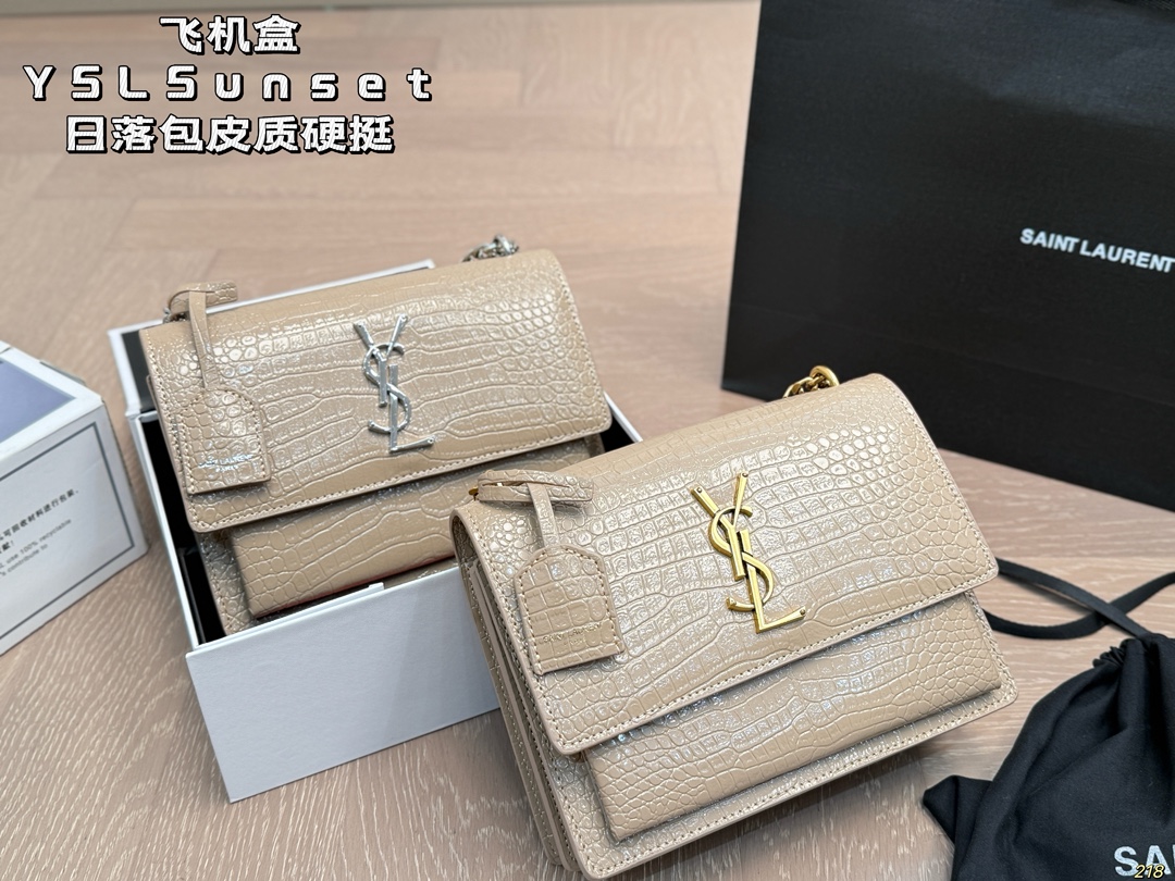 4-color airplane box Saint Laurent YSL Sunset bag The leather is firm, the style is simple and aesthetically pleasing~ Very high-end and luxurious, extremely elegant! Full of femininity, can be worn all four seasons Size 22 16