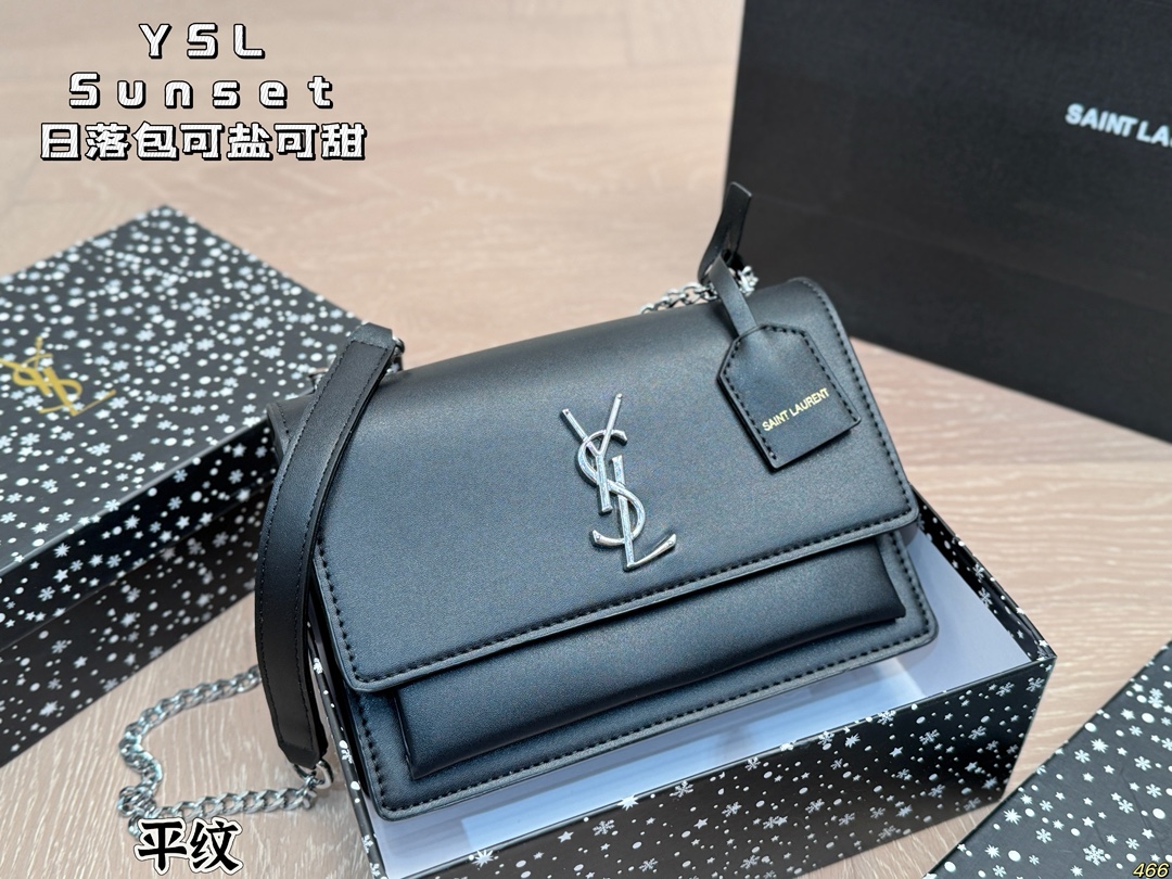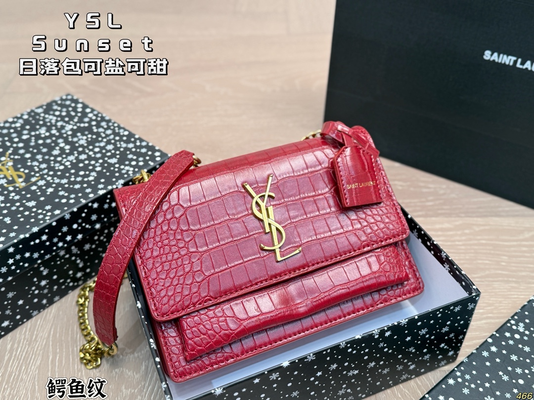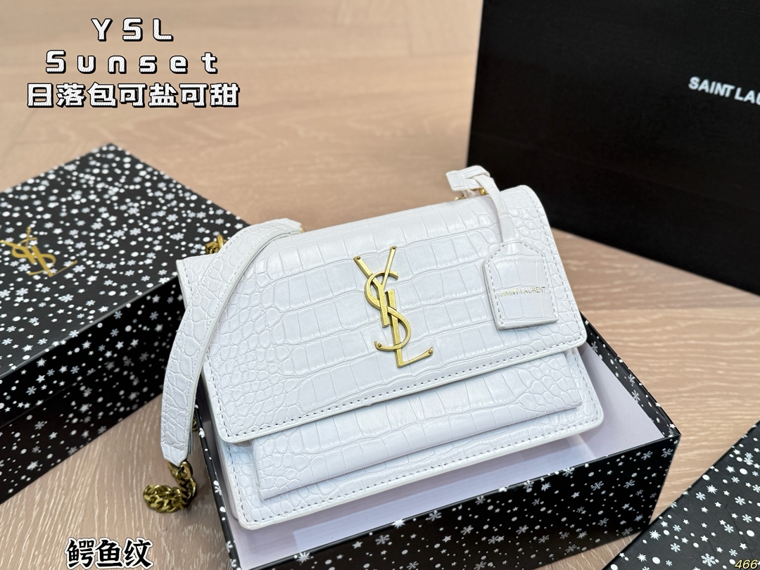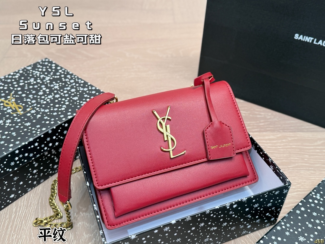 YSL Sunset bag in 8 colors. Sturdy leather, elegant design. Versatile for all seasons. Size: 22x16cm.