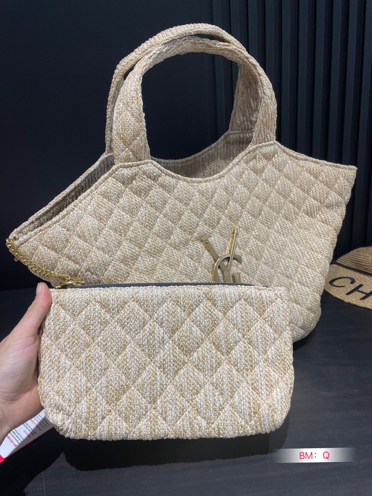YSL Woven Tote Bag: Casual, versatile, lightweight, and practical. Stylish straw series, dimensions 38*36.
