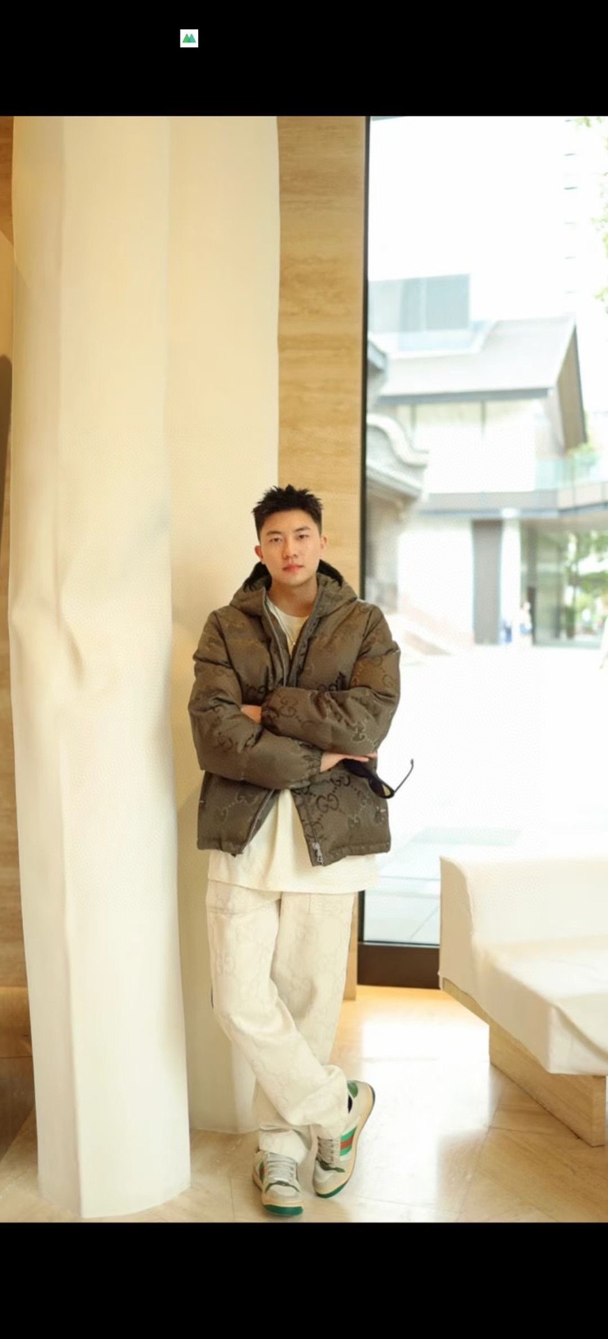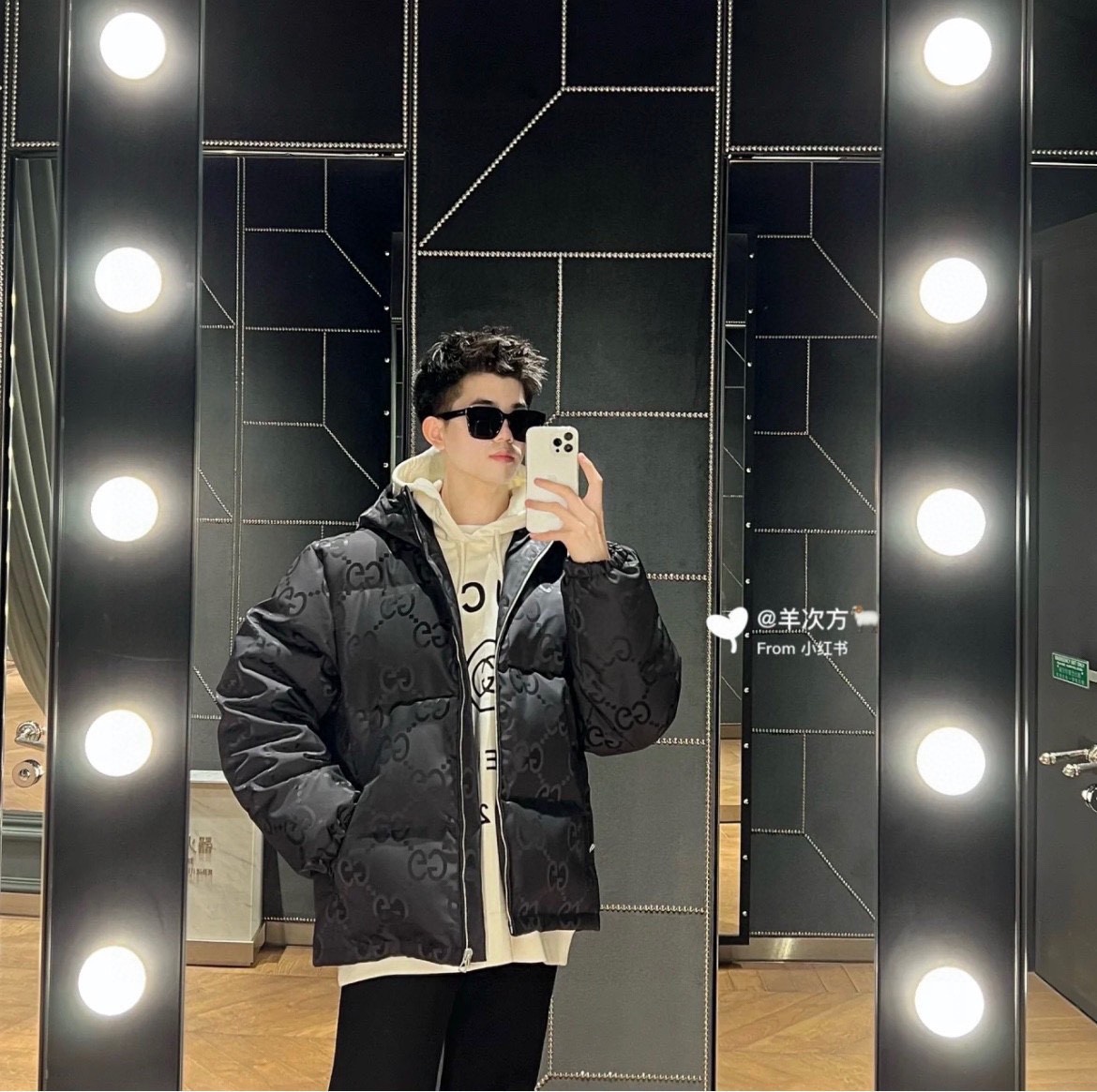 Gucci Gucci GG full print logo double G hooded two-color down jacket for men Color: Black Green Size: 42 44 46 48 50