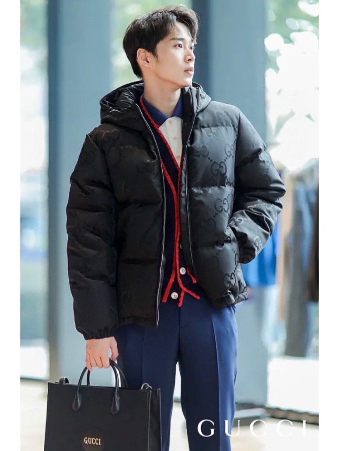 Gucci Gucci GG full print logo double G hooded two-color down jacket for men