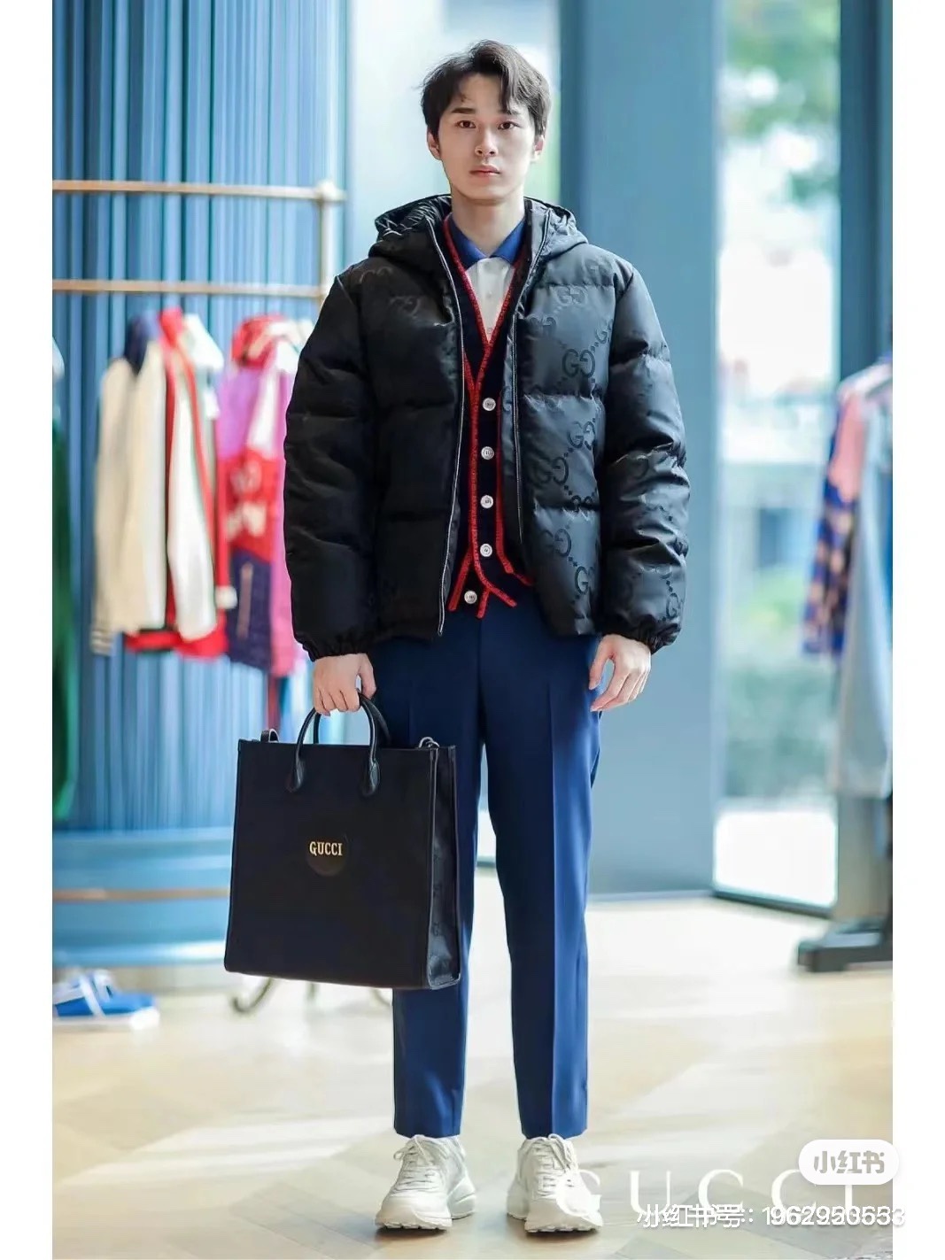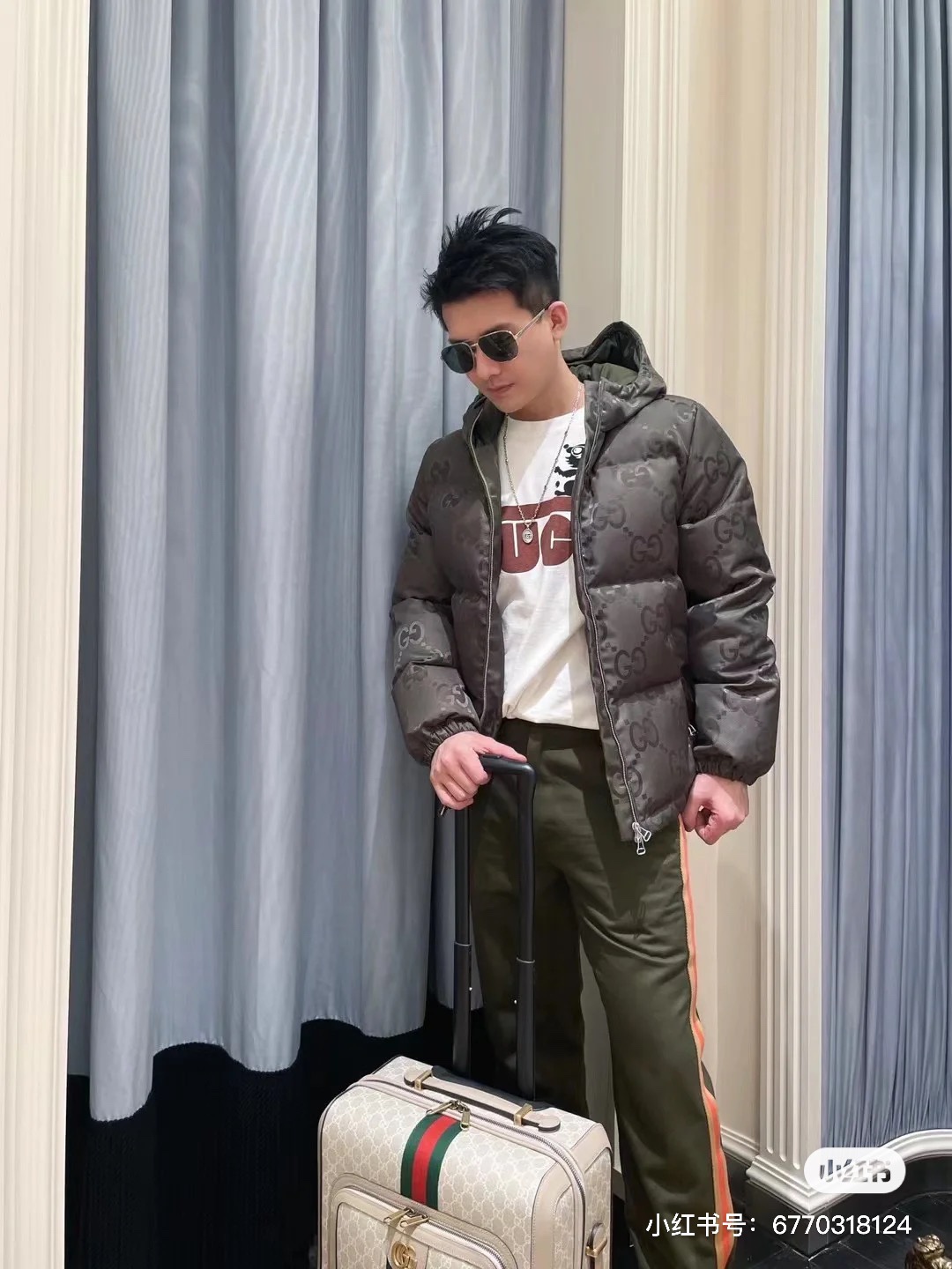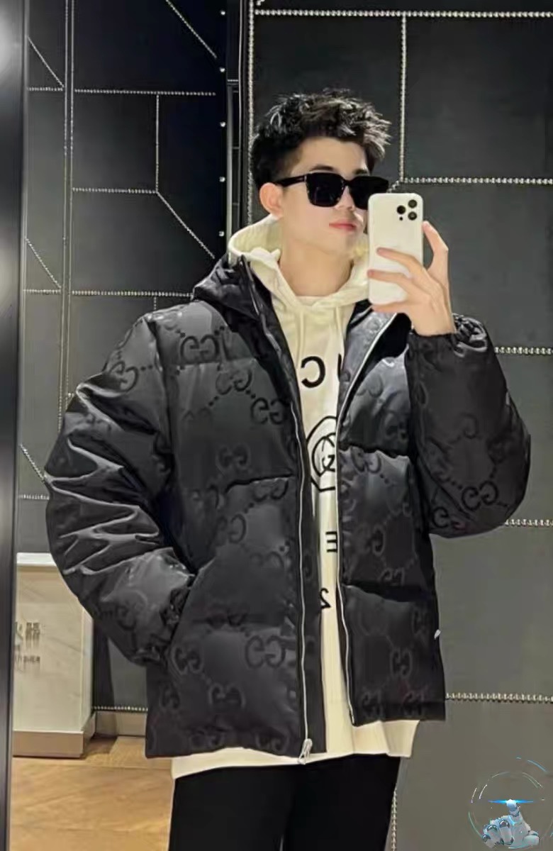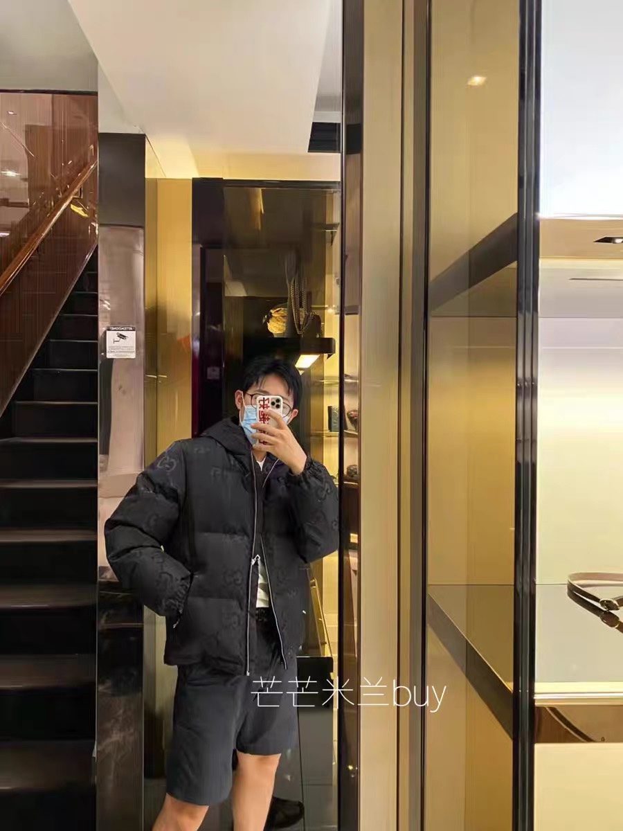 Gucci Guqi's new autumn and winter double G printed canvas down jacket. This brand new double G pattern presents the classic double G letter interweaving pattern in a different exaggerated way than before. It's the year's big hit series that you can't buy at the counter even with money, unisex.