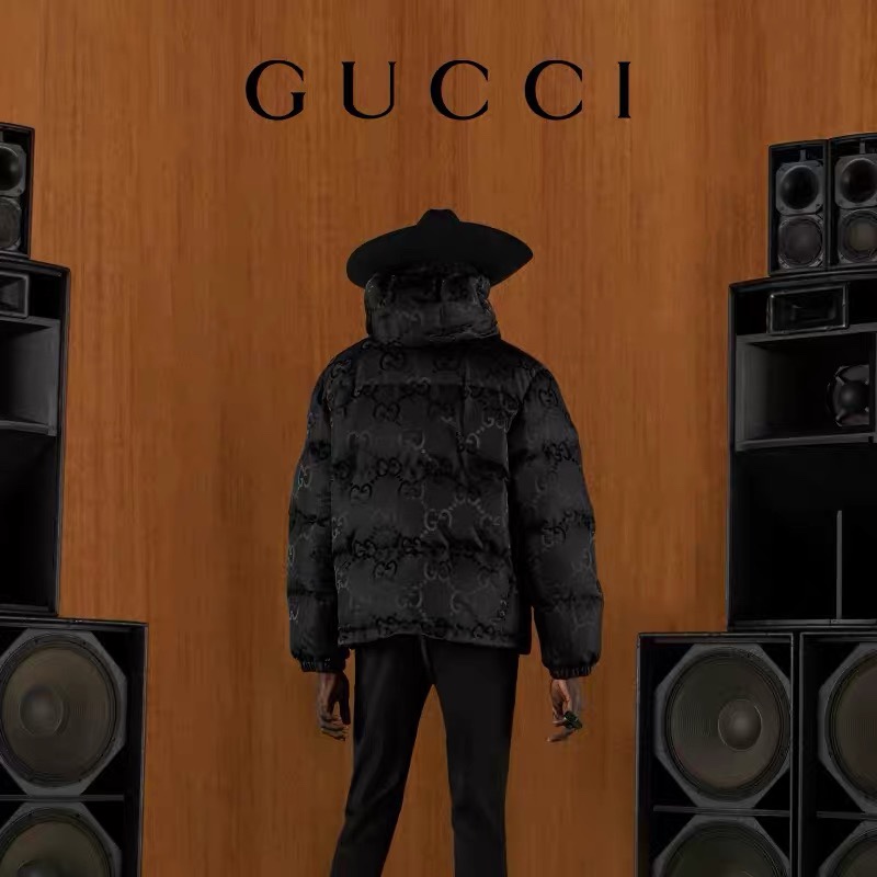 Gucci Gucci Autumn and Winter New Double G Printed Canvas Down Jacket. This new Double G pattern presents the classic double G letter interwoven pattern in an exaggerated way different from the past. It's the year's big hit series that you can't buy at the counter even with money. Unisex.