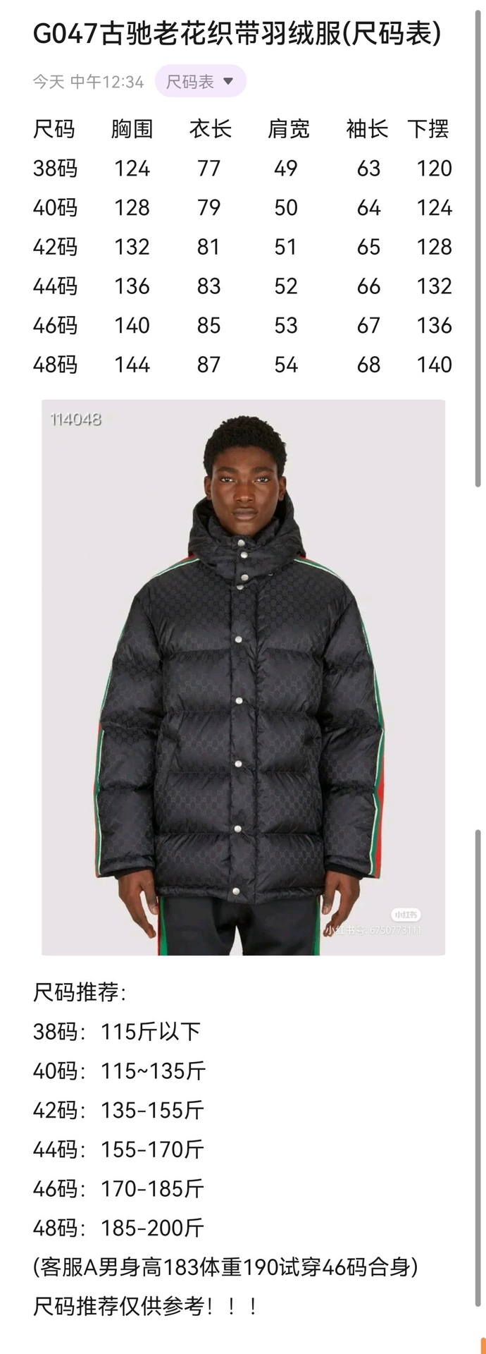 High-end Guangzhou version Gucci stand collar hooded down jacket with dual-tone G stripe design.