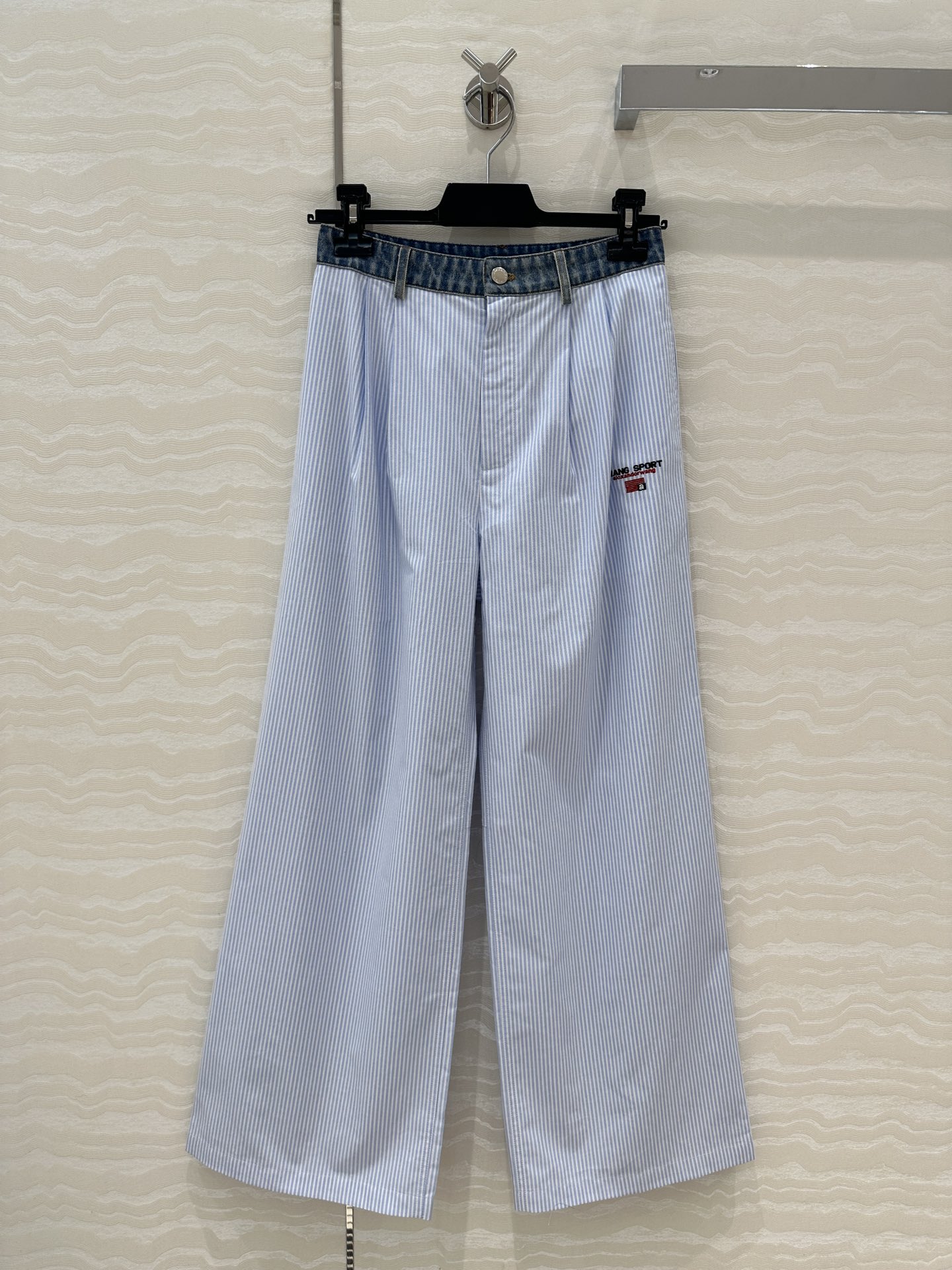 Exclusive AW design denim pants with wide-leg cut and waist splicing. Flattering and versatile, available in two colors and sizes S-L.