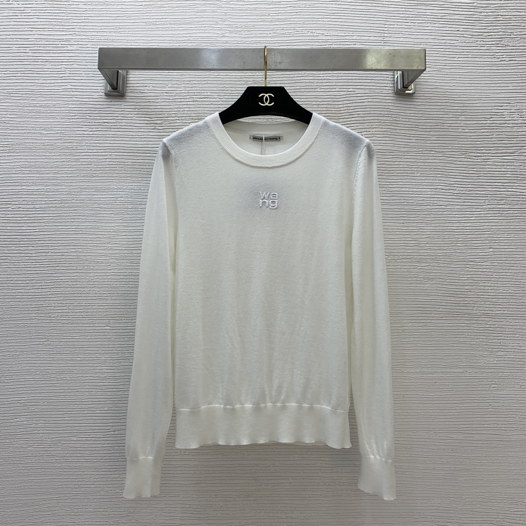 Alexander Wan new round neck long sleeve knit top. Colors: white, red, black, gray. Sizes: M L XL.