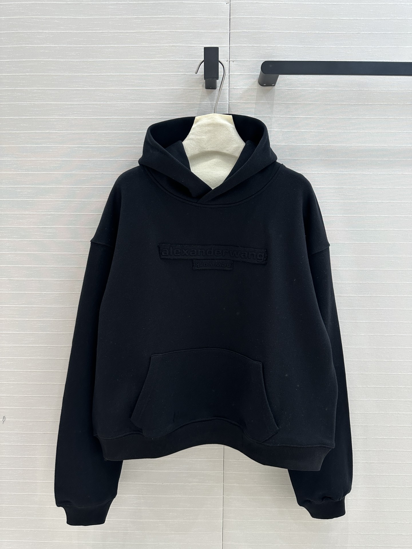 Alexander Wang 24 autumn winter new pattern embossed letter patch embroidery hoodie. Loose fit, imported cotton fabric. Two colors, three sizes available.