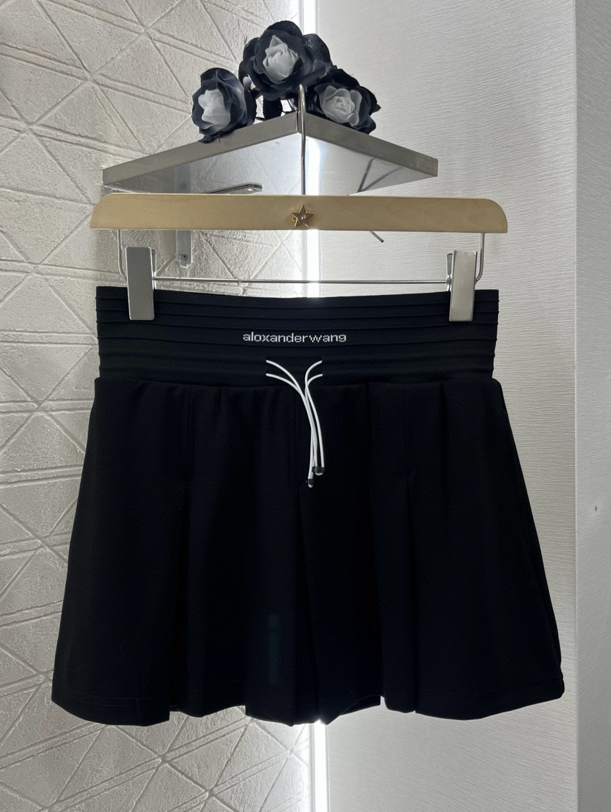 Alexander Wan 2025 new drawstring pleated skirt. Custom imported fabric, breathable and elastic. High-waist design with logo, flattering and versatile. Two colors available.