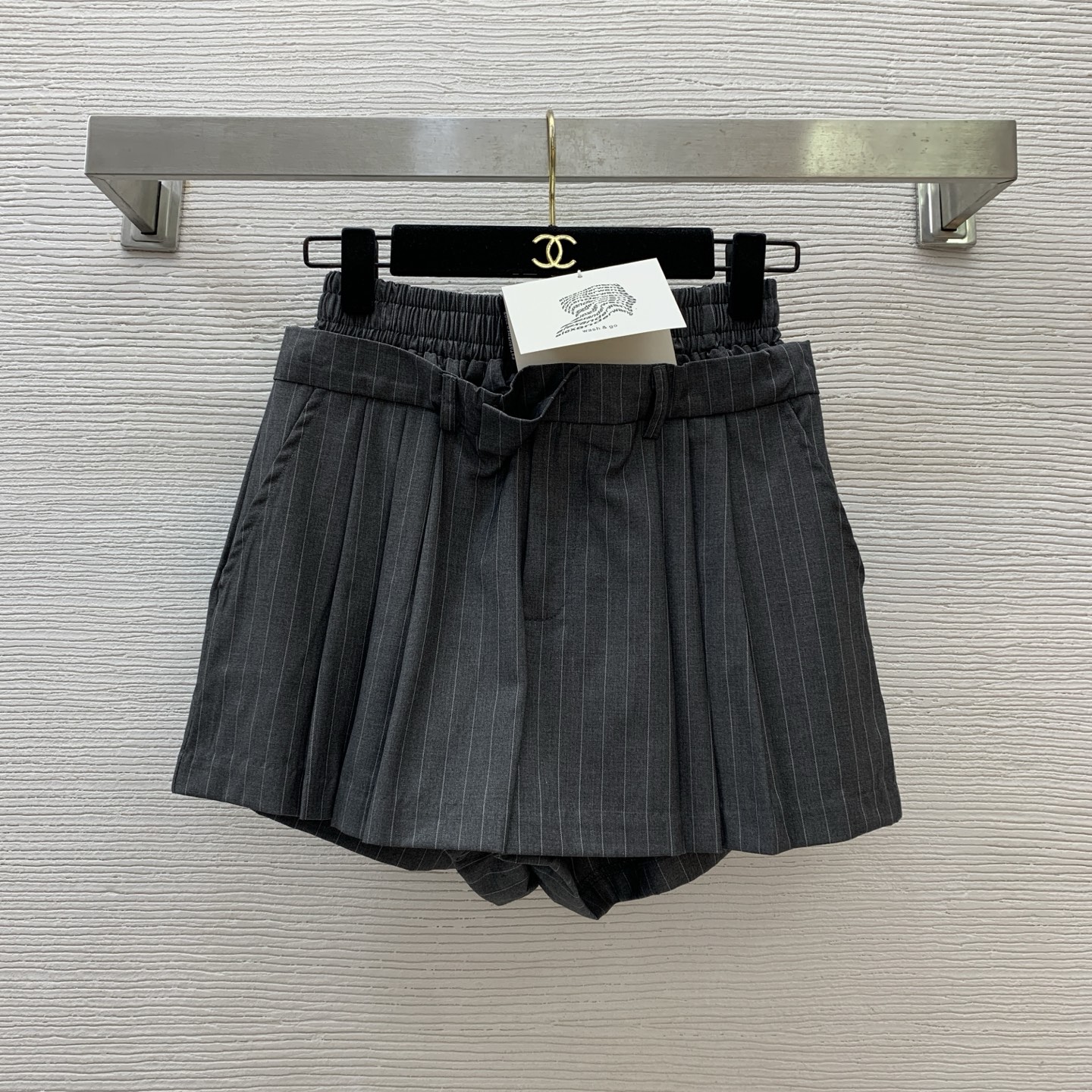 Alexander Wang new wide-leg shorts with logo patch, pleated stripes, gray in S, M, L sizes.