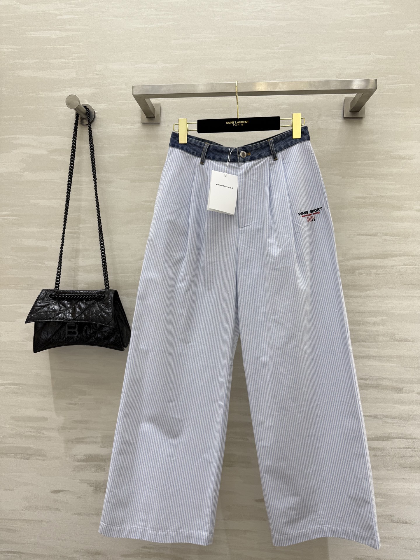 Alexanderwan 25 denim patchwork wide-leg pants with logo embroidery. High-quality custom, available in S/M/L.