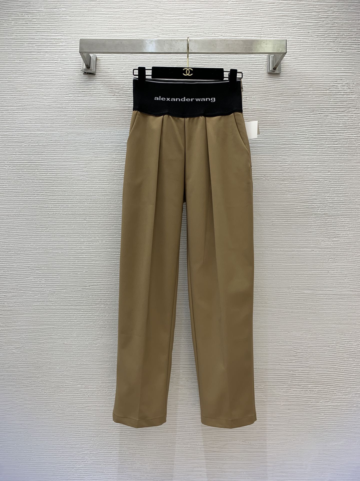Alexander Wan classic high-waist pants with side zipper and logo tape. Colors: black, white, khaki. Sizes S, M, L.