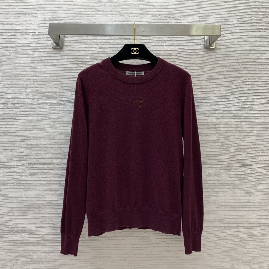 Alexander Wan new round neck long sleeve knit top. Colors: white, red, black, gray. Sizes M, L, XL.
