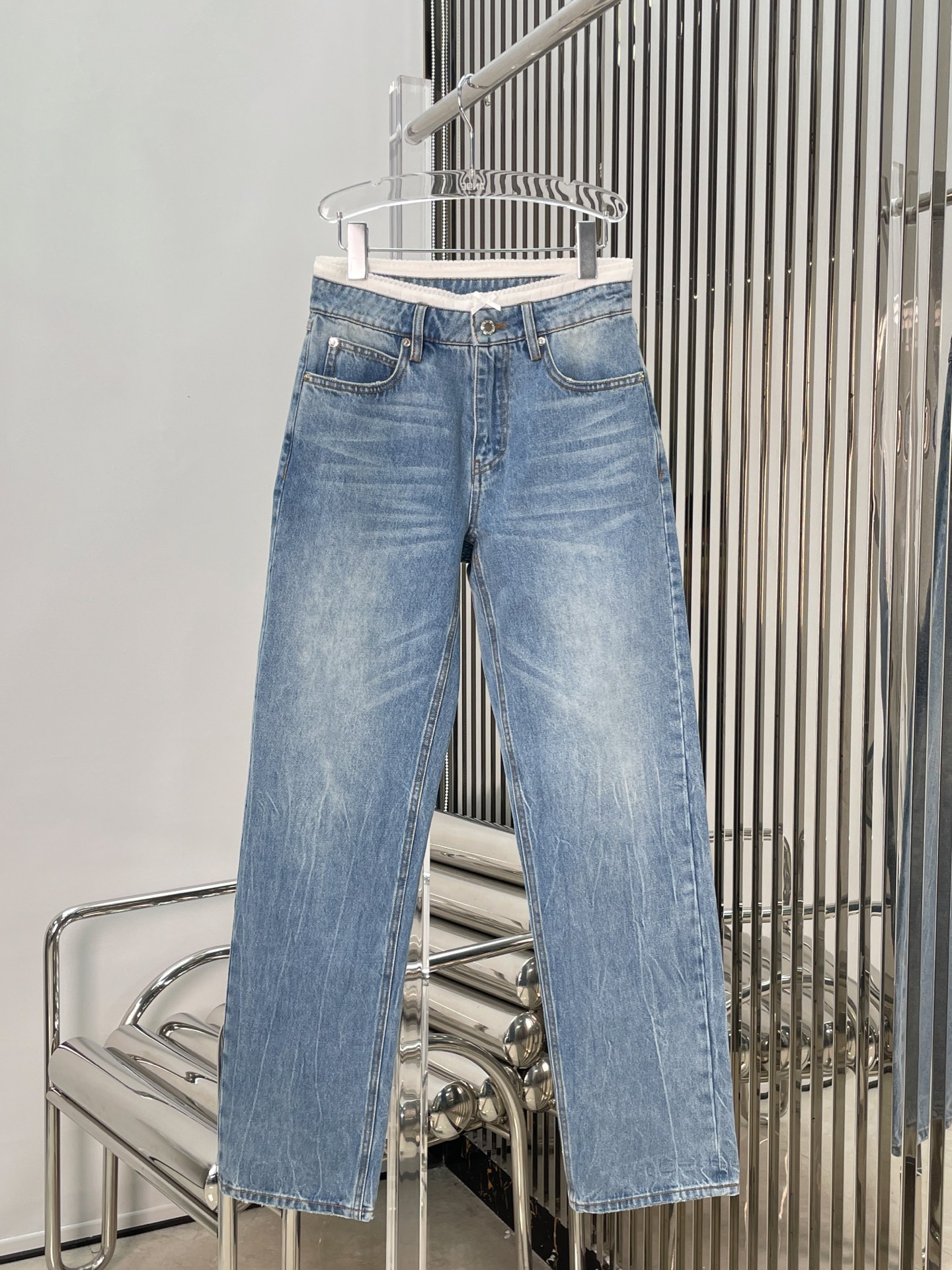 Alexander Wang 25 new cuffed letter jeans, cotton, comfortable, straight loose fit, versatile.