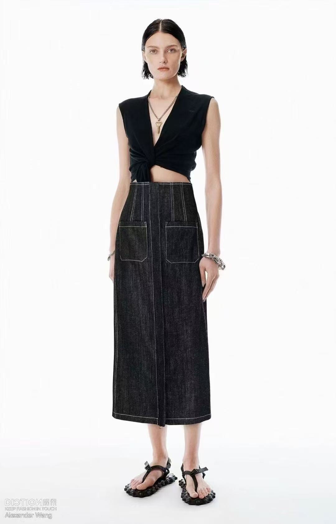 Alexander Wang new double pocket high-waist denim skirt, black, S-XL.