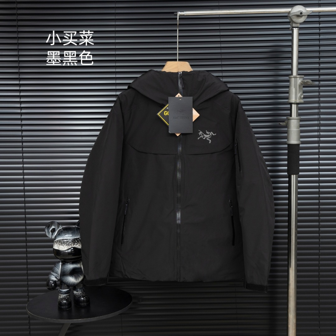 ARC'TERYX 2025 autumn/winter men's waterproof hooded jacket. Colors: Black, Gray, Deep Gray. Sizes: M to 4XL.
