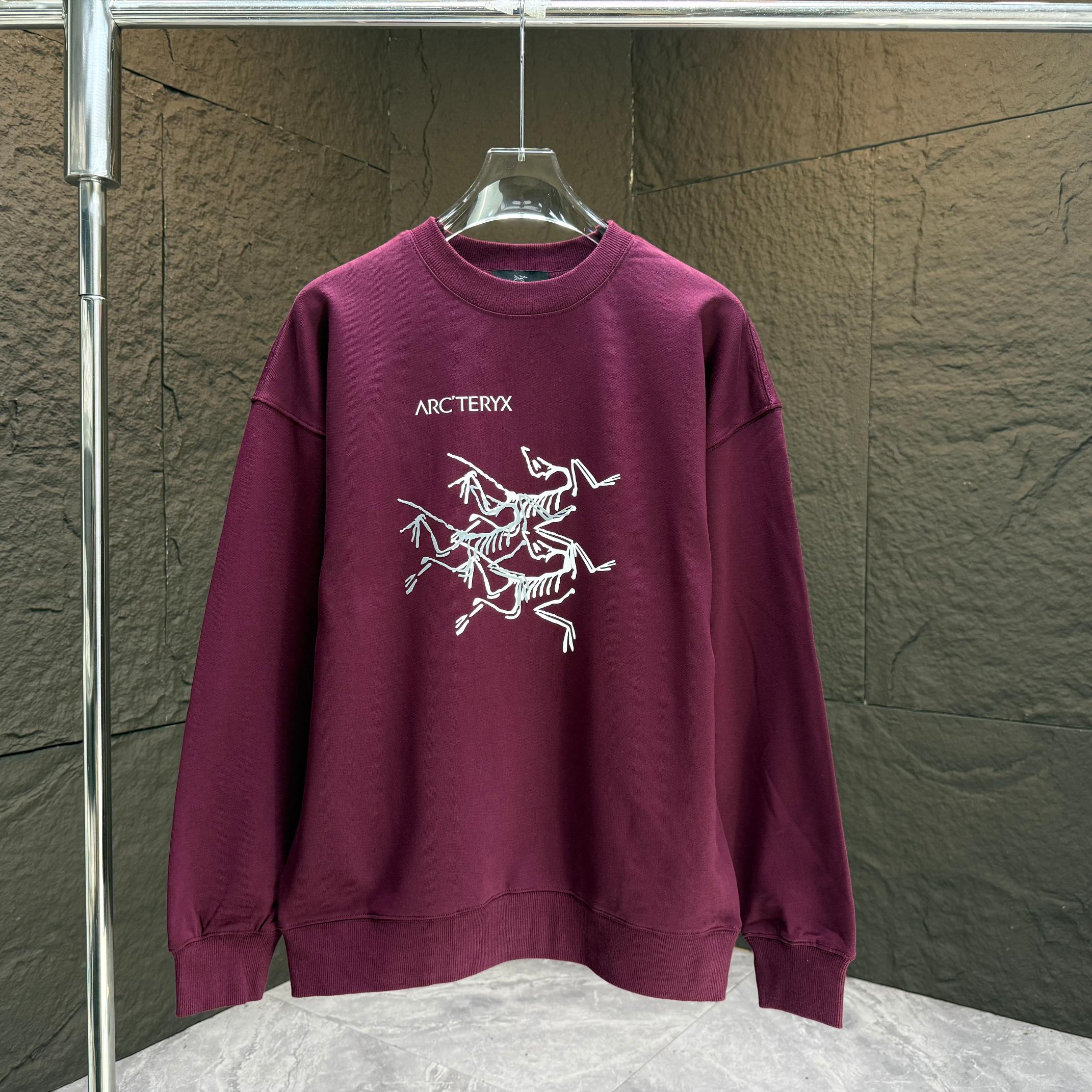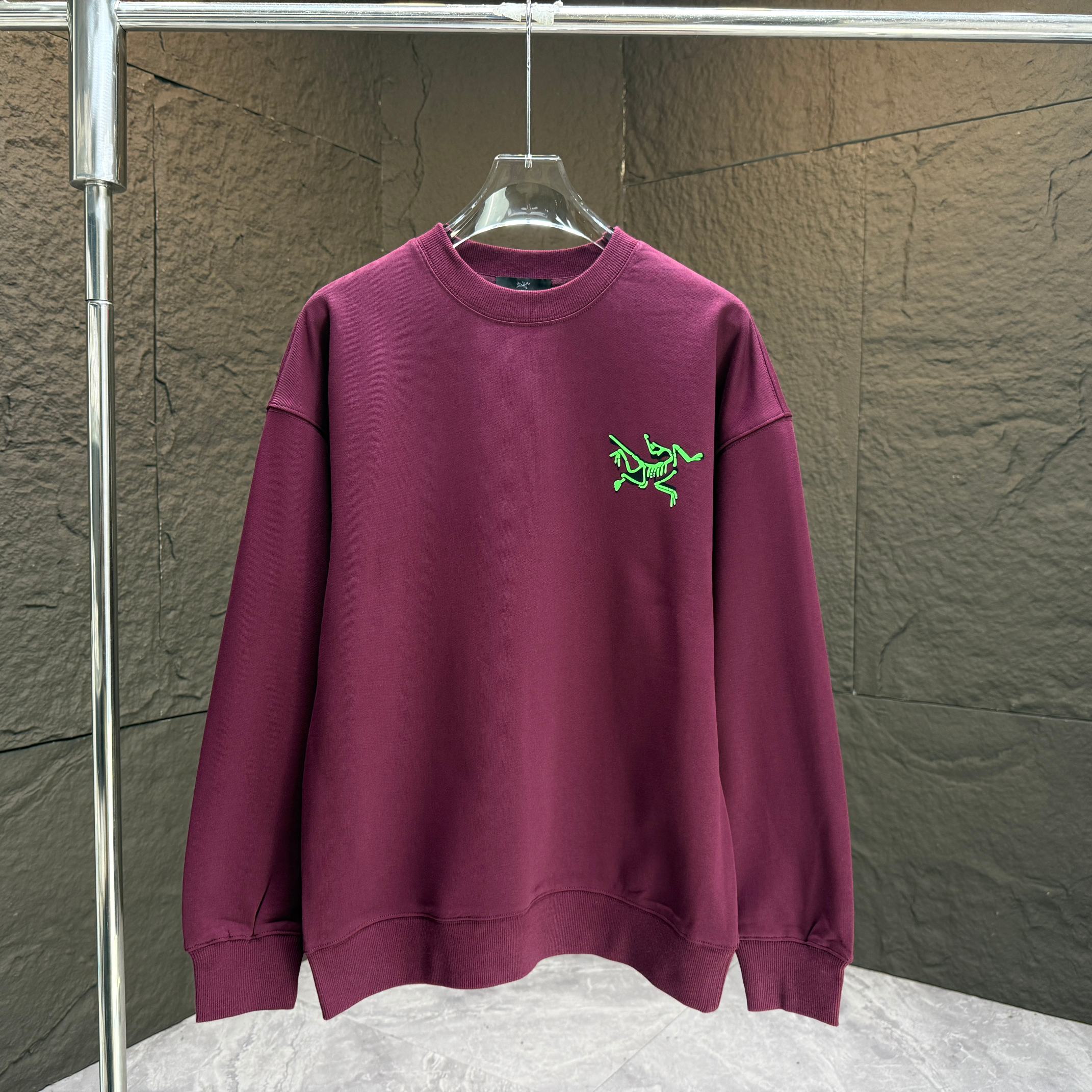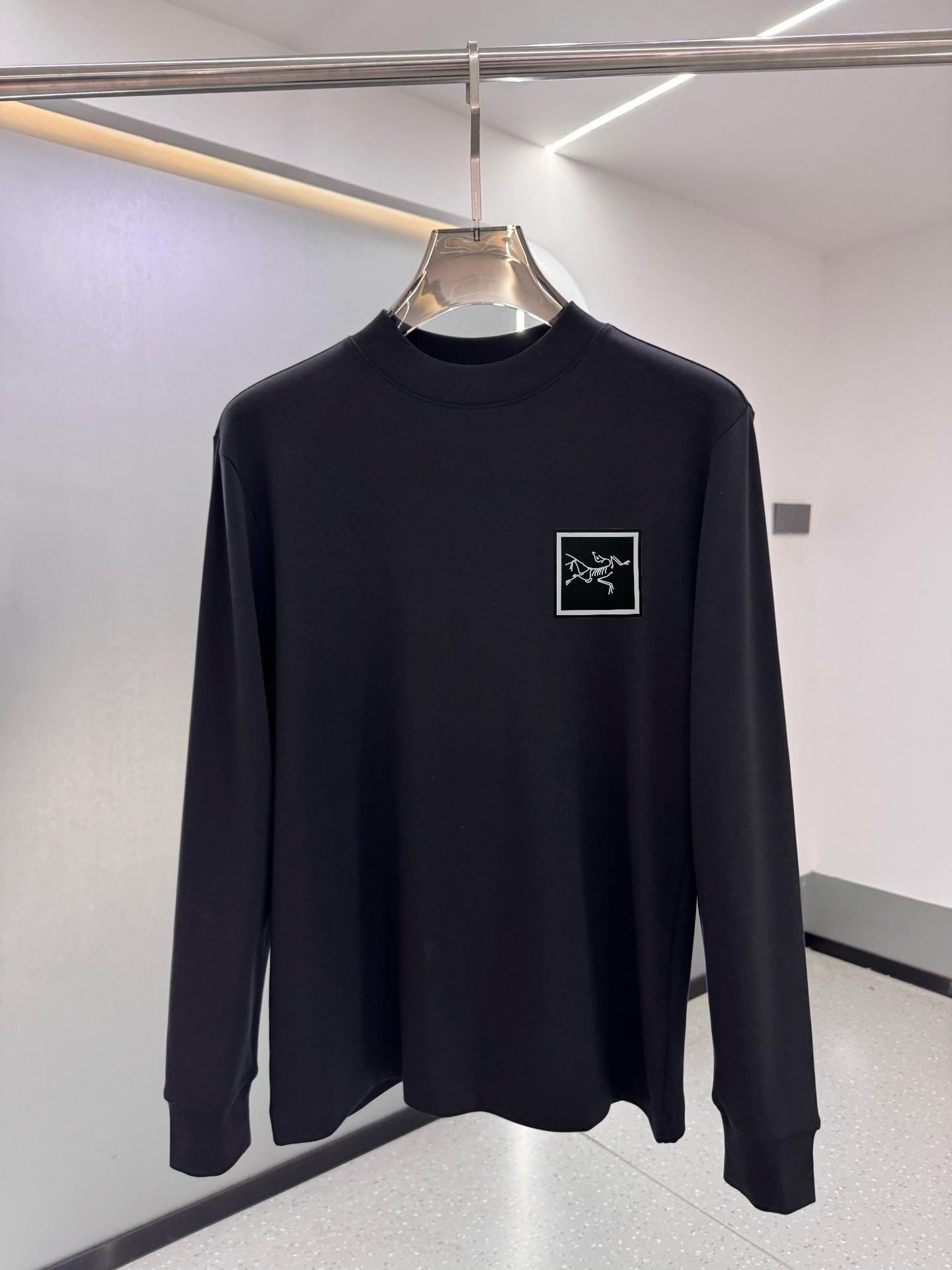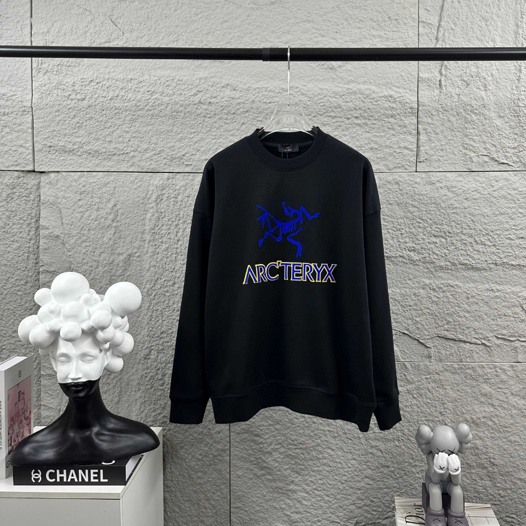Arc'teryx 2025 Fall/Winter men's logo embroidered cotton sweater. 330g weight, comfortable and breathable. Available in black and white, sizes XS-2XL.