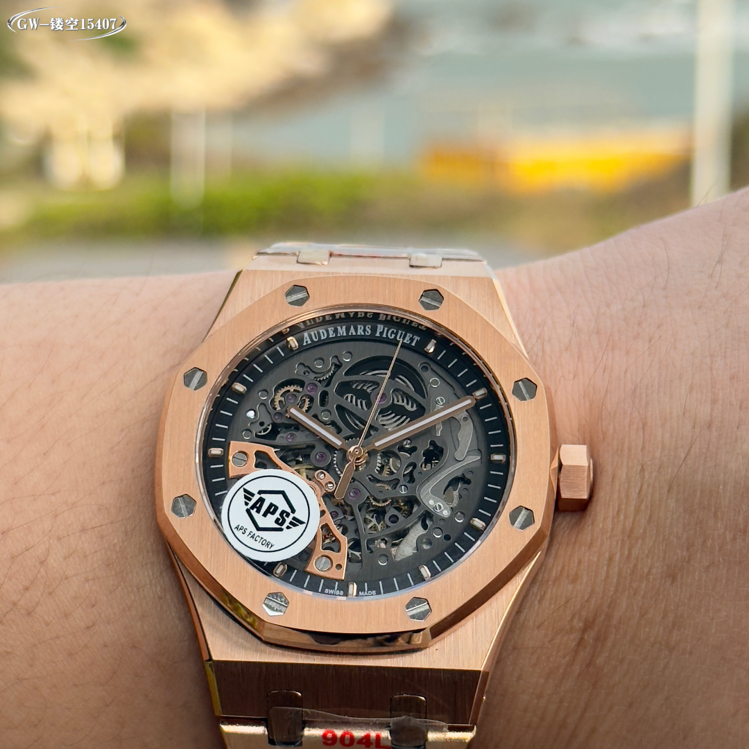 Exclusive original 1:1 replica AP Audemars Piguet watch with one-year warranty, automatic movement, sapphire glass, and waterproof. Limited supply.