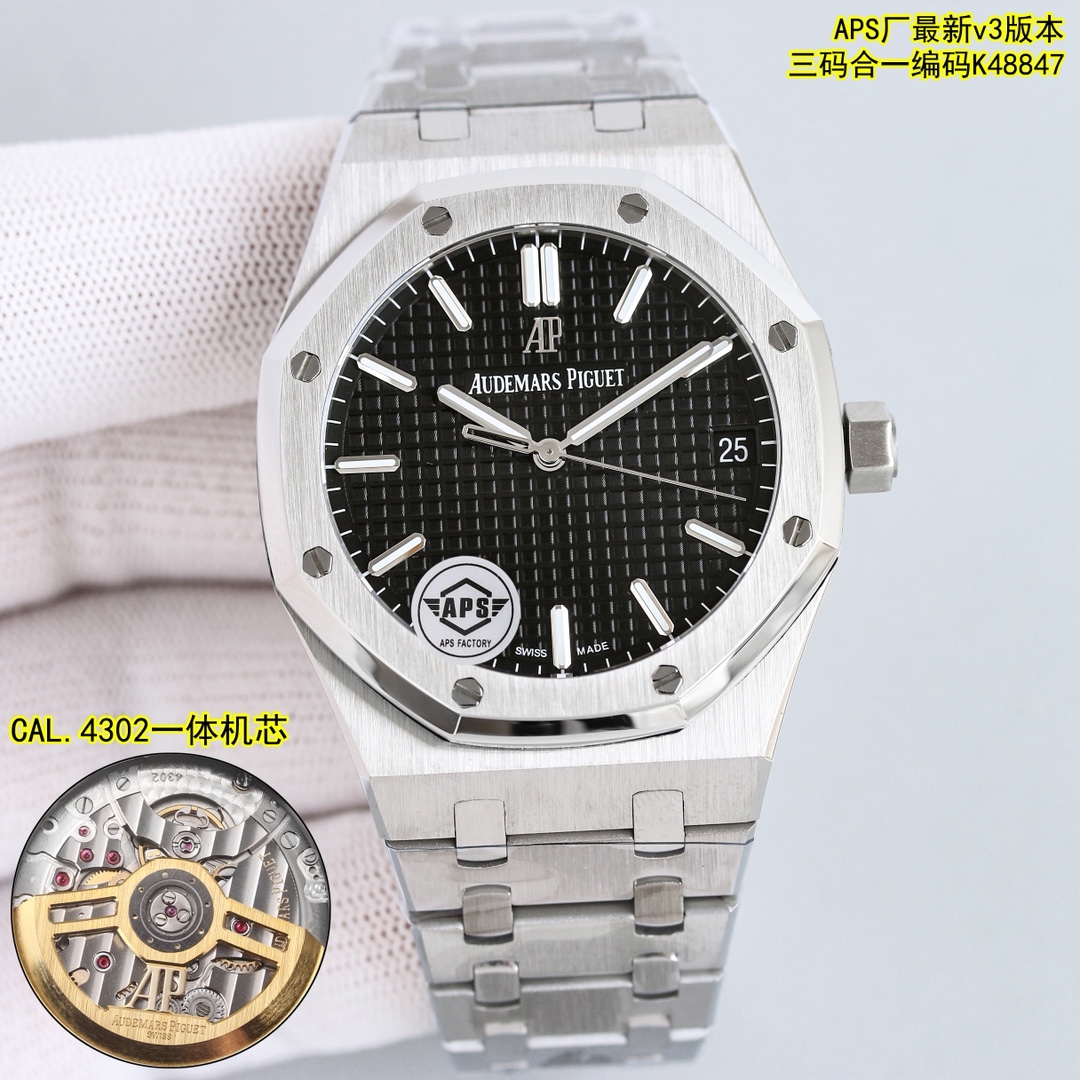 APS new release, Audemars Piguet Royal Oak 15500, top-tier steel watch. 1:1 dimensions, refined details, superior bracelet, accurate rotor color, modified 9015 movement, textured dial. Custom version, three matching codes.