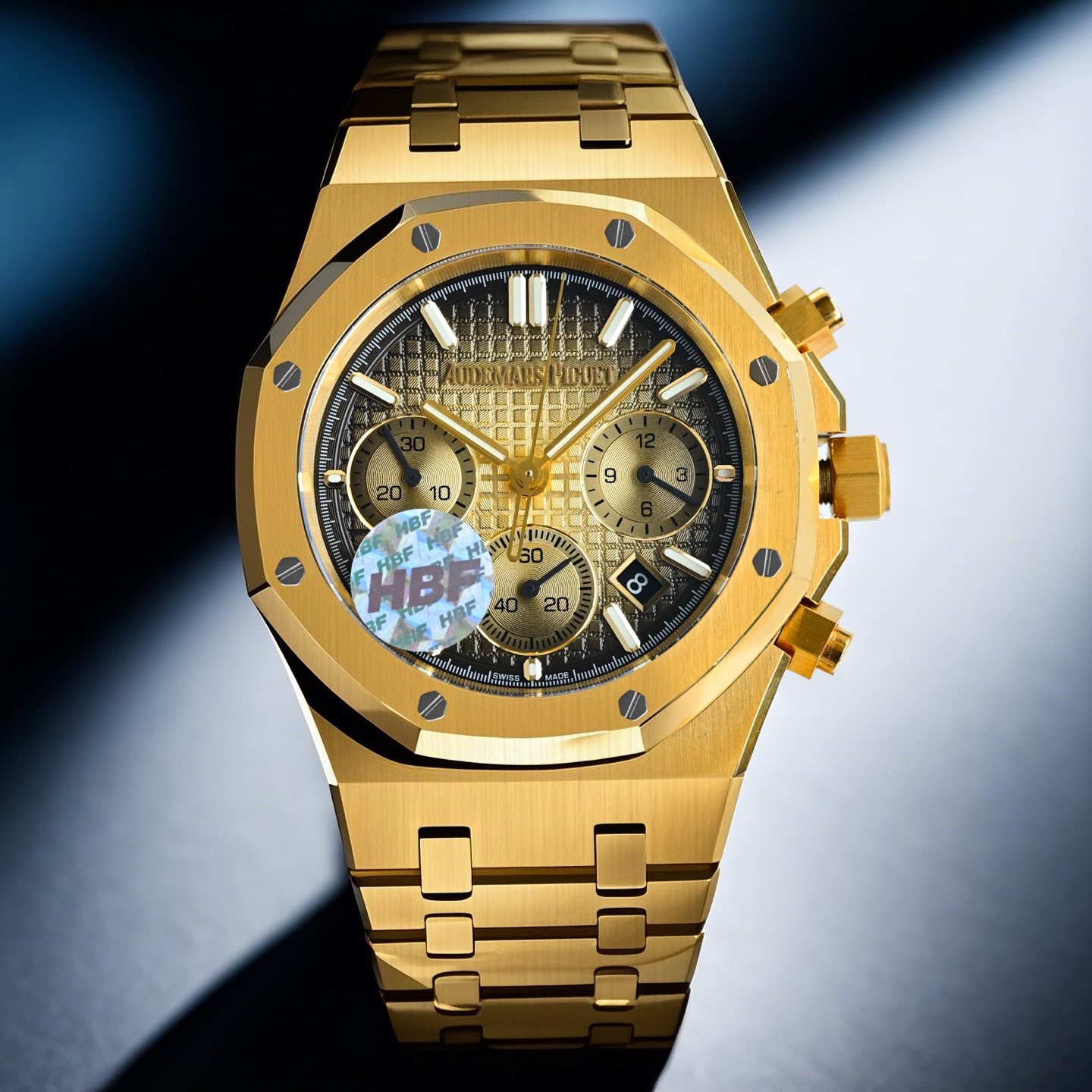 HBF Factory Audemars Piguet 2024 Royal Oak 26331ST replica. Features 7750 chronograph movement, 41mm steel case, 14mm thickness, and strong luminescence. 1:1 replica, superior quality.