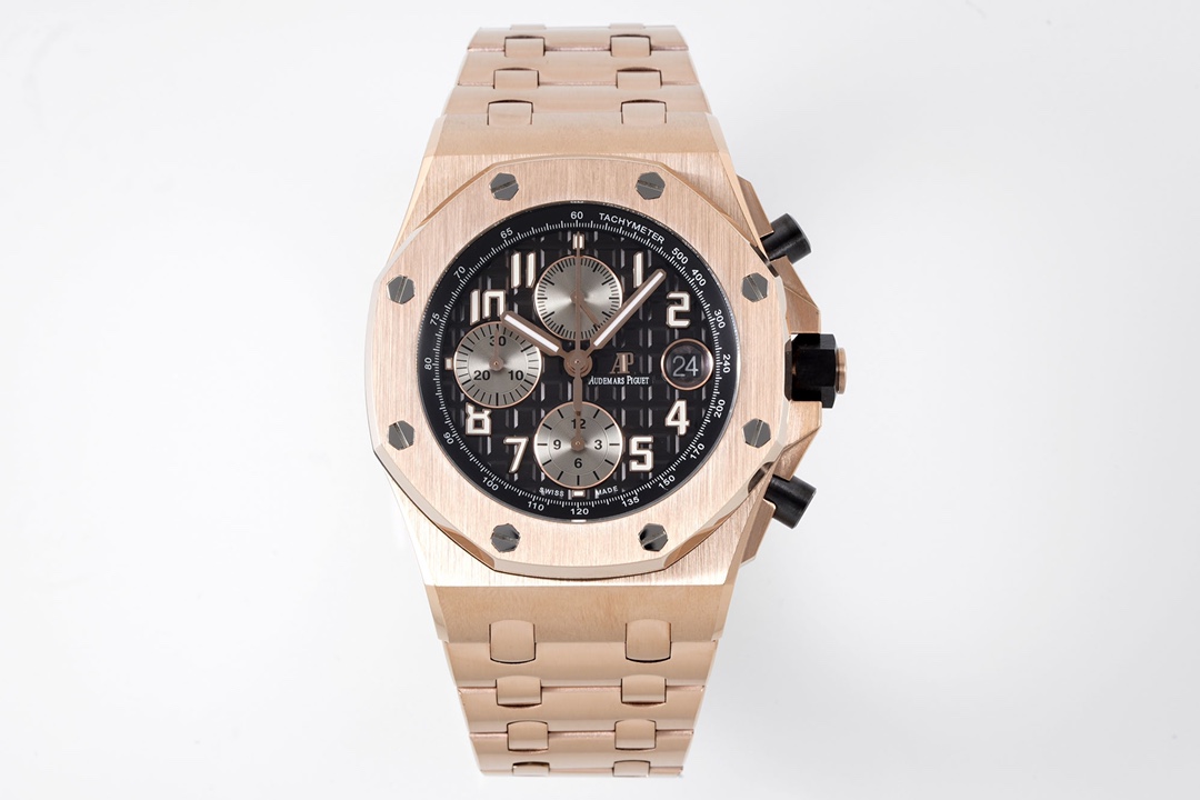 APF factory Audemars Piguet Royal Oak Offshore, steel strap version with original movable headpiece for better wrist fit. Equipped with 3126 chronograph movement.